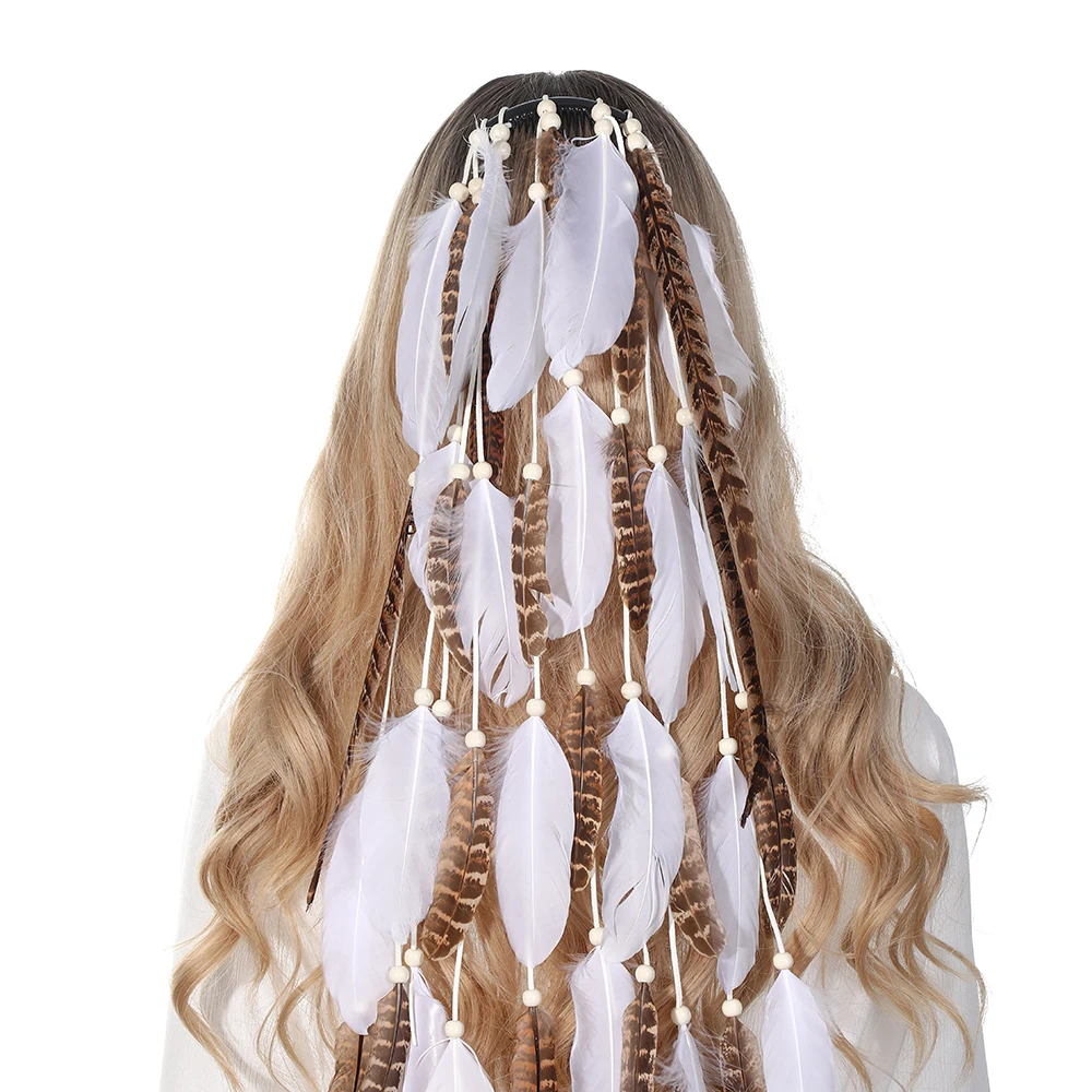 Женский головной убор Haimeikang, повязка на голову с перьями в стиле бохо и павлина, головной убор для хиппи, аксессуары для волос