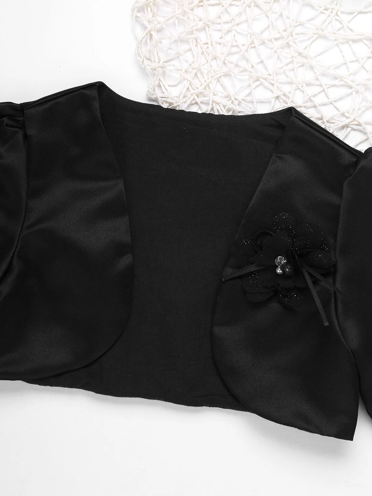 Особенности:Очаровательное болеро для девочек; Кардиган; Свитер.Длинные рукава, с подкладкой, открытый кардиган.Спереди с 3D цветком для украшения.Подходит для вечерние, свадьбы, дня рождения или в качестве повседневной одежды.