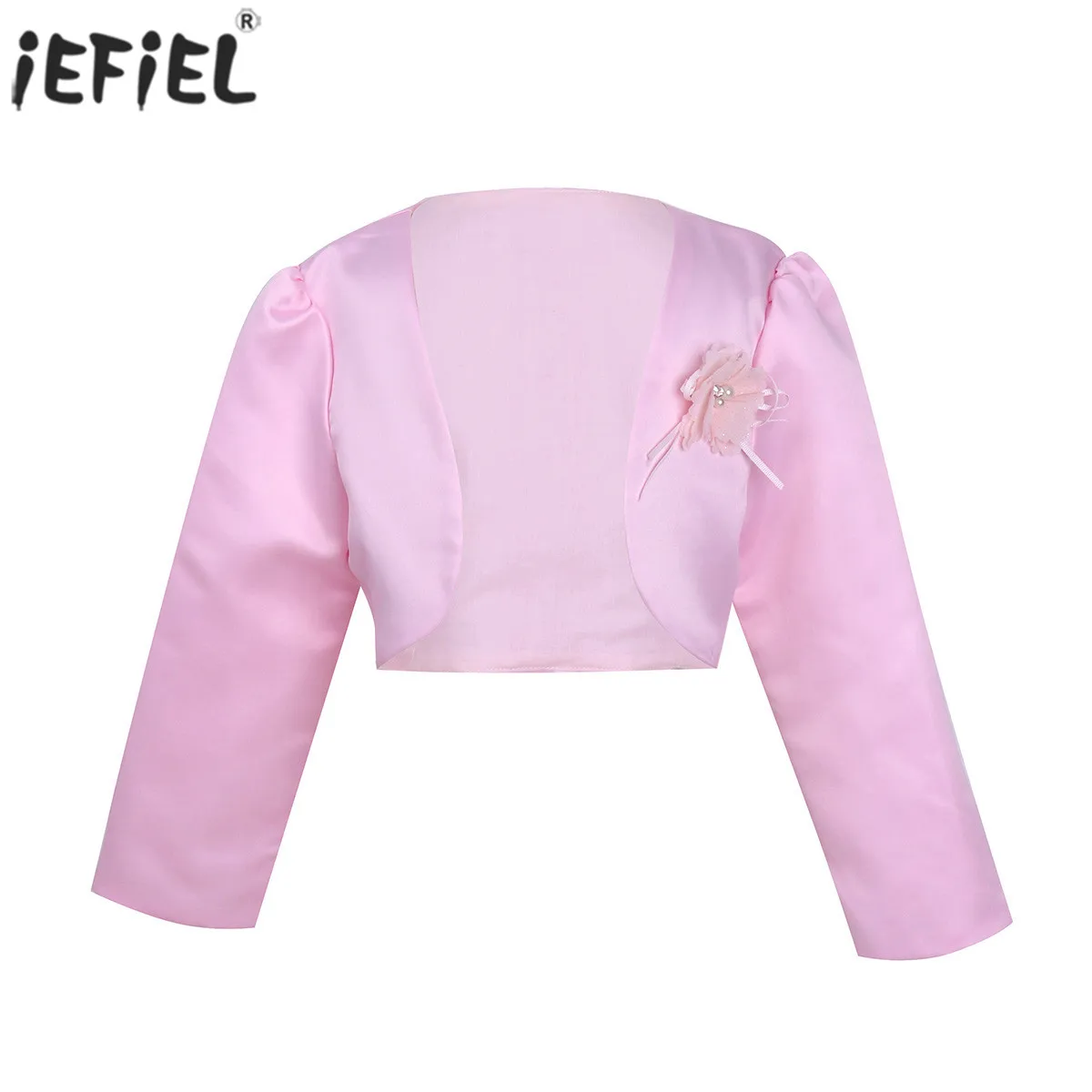 Весенняя Детская куртка-болеро с длинным рукавом, шаль, накидка для официальной носки, накидка для свадебной вечеринки, верхняя одежда, пальто, одежда для девочек с цветами
