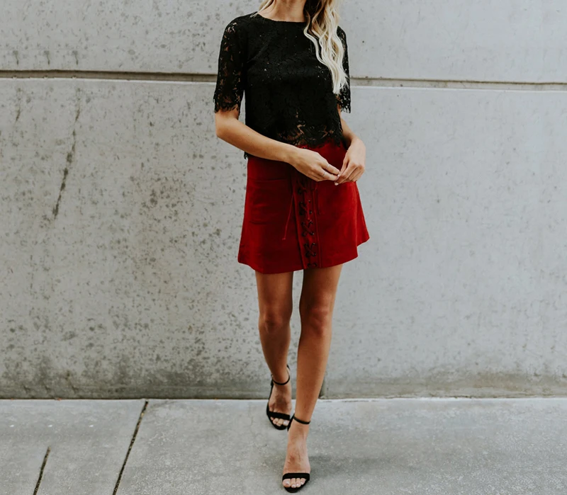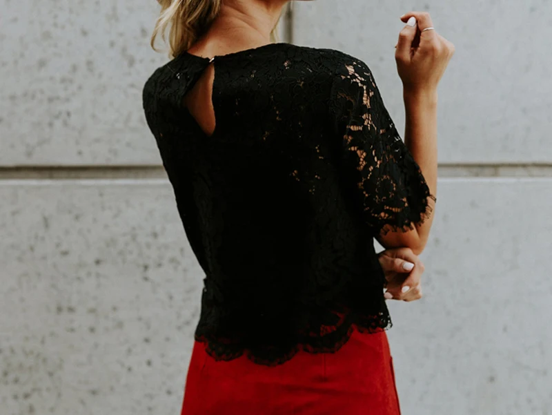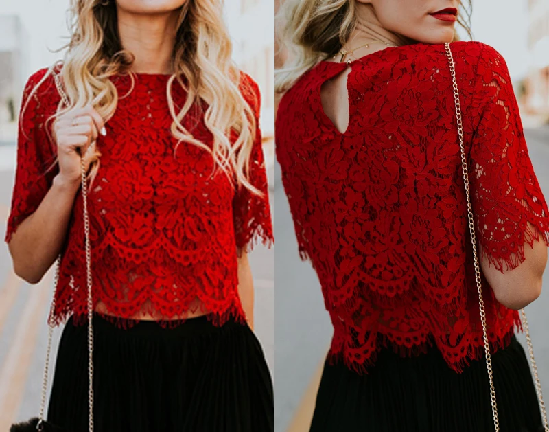 Блузка женская с коротким рукавом, повседневный кружевной топ, красная Свободная рубашка, одежда для женщин, 2021
