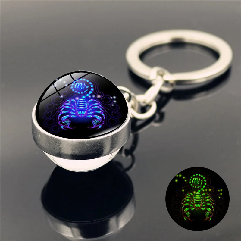 Брелок для ключей со стеклянным шаром, со знаком зодиака, 12, брело...