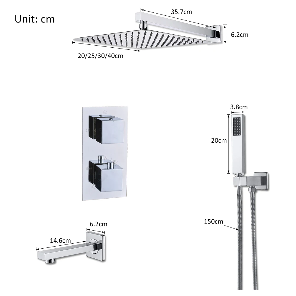 Хромированный термостатический душевой набор, двойная ручка, дождевые Смесители для ванны, Душевая система Водопад, скрытая душевая системный кран