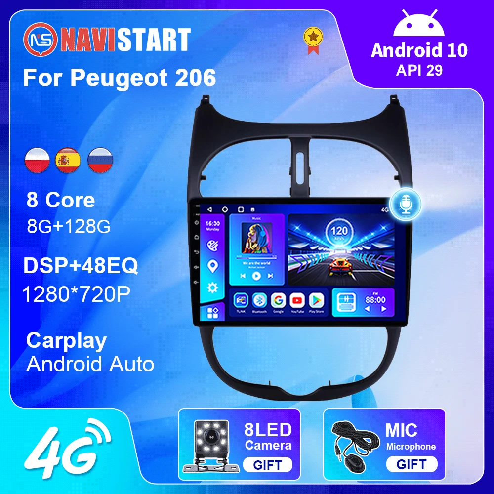 Автомагнитола NAVISTART для Peugeot 206 2000-2016, 2 din, Android 10