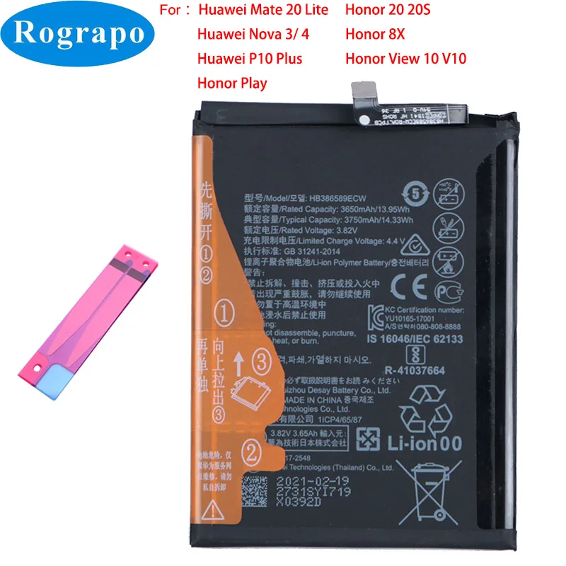 Оригинальный 3750 мАч, HB386589ECW батарея для Honor 20 20S 8X JSN-L11 L21 L22 L23 L42 AL00 Huawei P10 плюс P10 + VKY-L09 L29 AL00