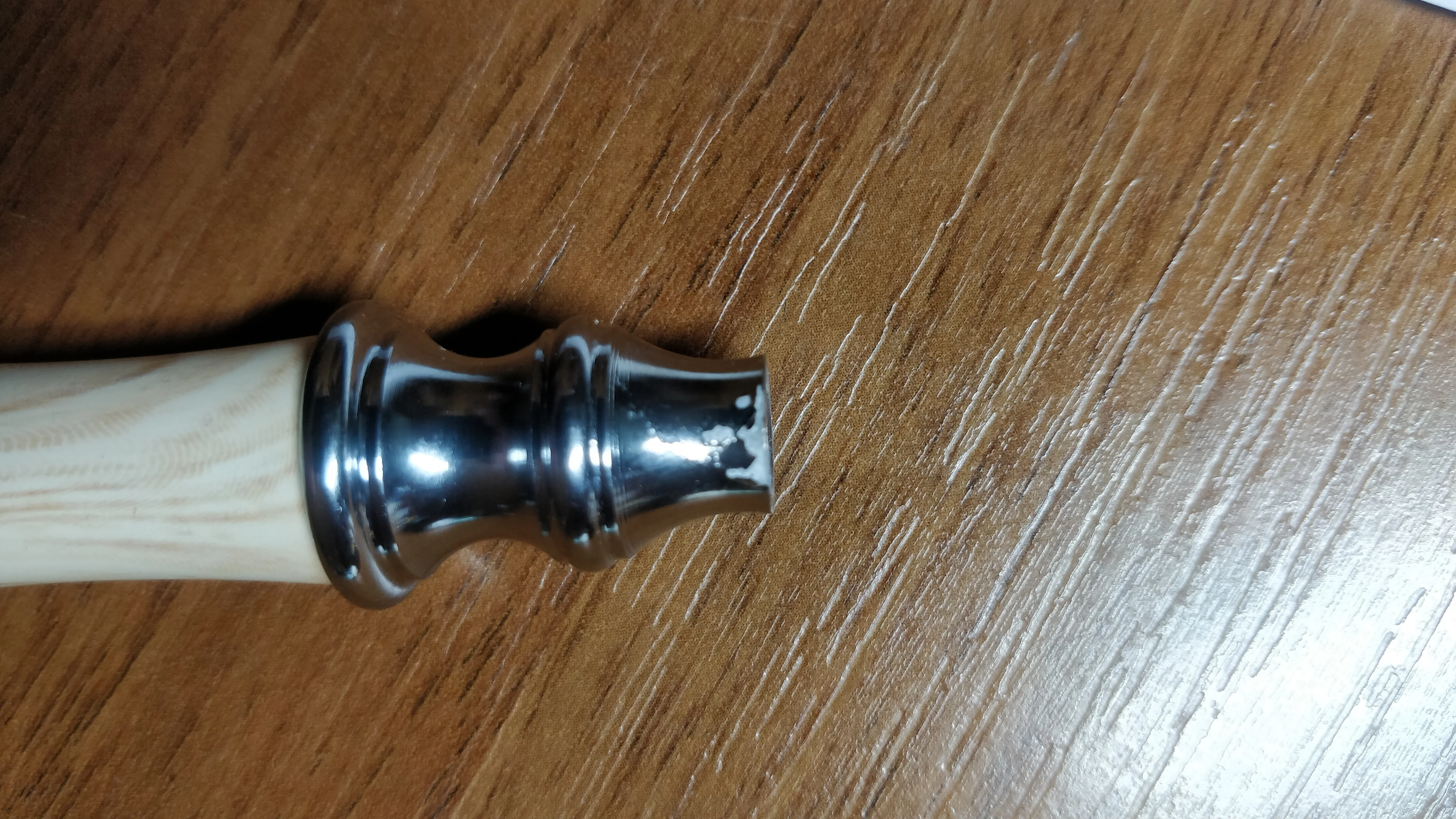 Хорошая ручка, без косяков , резьба ровная, внутри имеет цвет меди. Выглядит интересно, лучше чем на картинках, удобная, длинна в самый раз, не толстая. Перевес в сторону головы. Пришло меньше месяца, упаковка простой пакет пупырка