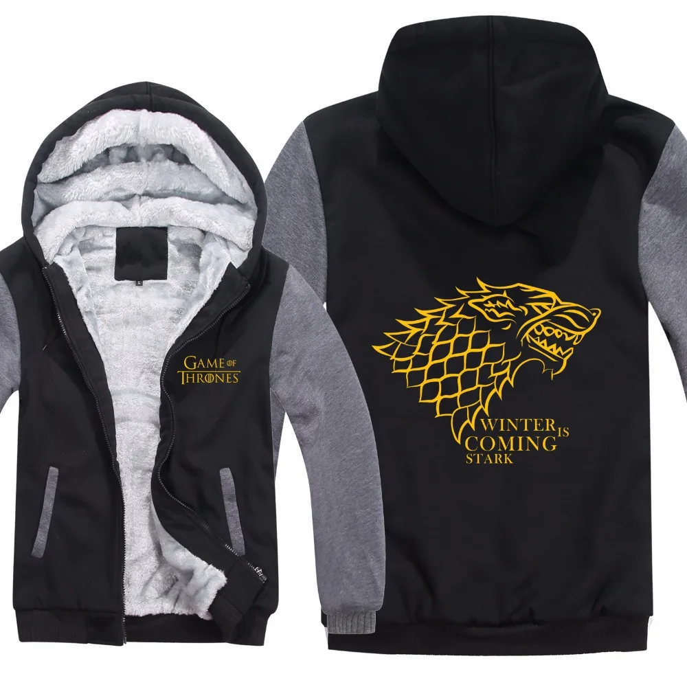 Игра престолов, дом Старк, толстовки, толстовка, Мужской пуловер, куртка, утепленная, на молнии, зимняя, флисовая, шерстяная подкладка, толстовки