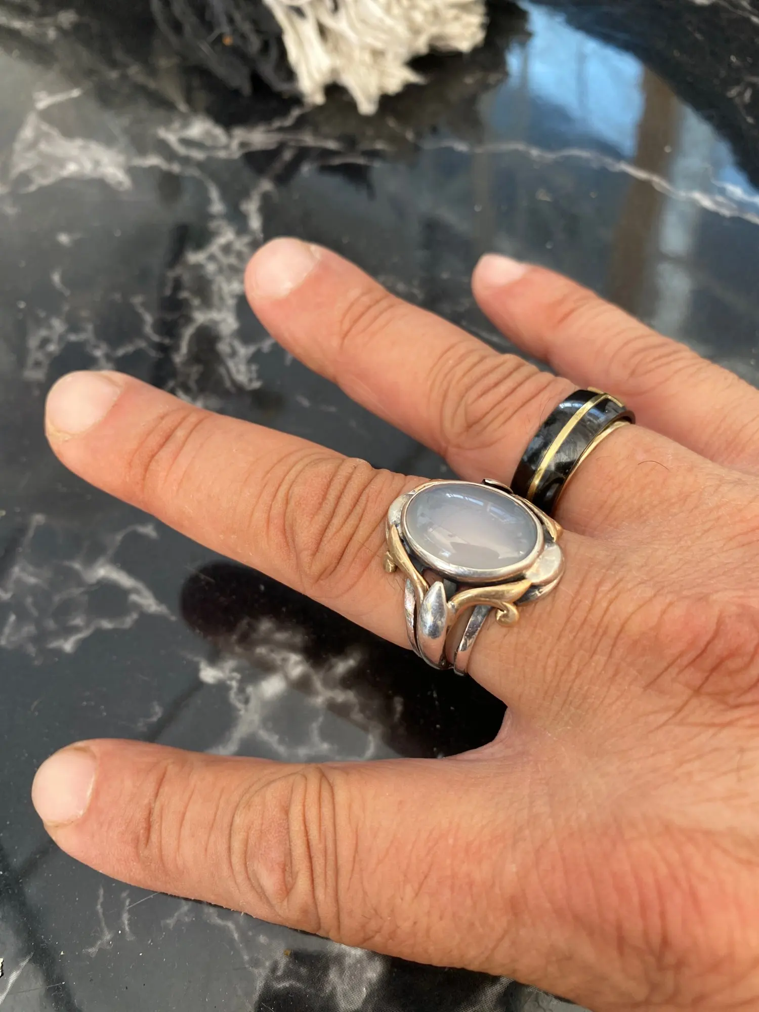 Белый перламутровый камень, Серебряное османское кольцо с флагами, ...