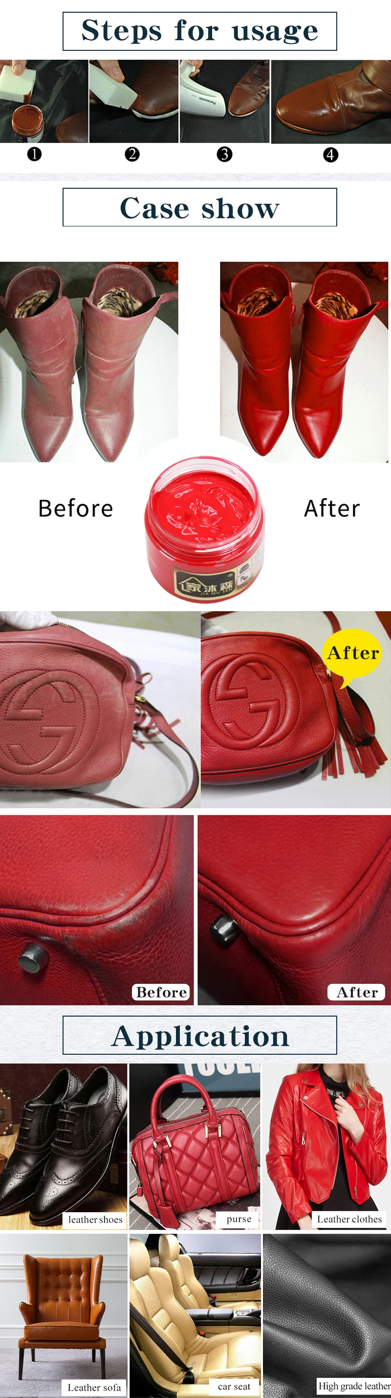 Красная паста для ремонта кожи, 50 мл, крем для обуви, краска для кожи, для на сиденье в машину на диван сумок, для восстановления царапин, трещин, краска для ухода за кожей