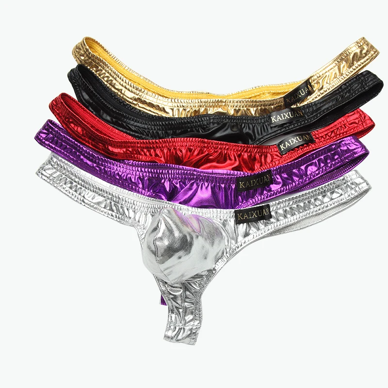 Мужские латексные трусы кожа мужские стринги и G стринги Сплошной Цвет выпуклость мешок Трусы-стринги бикини нижнее белье Трусы-стринги