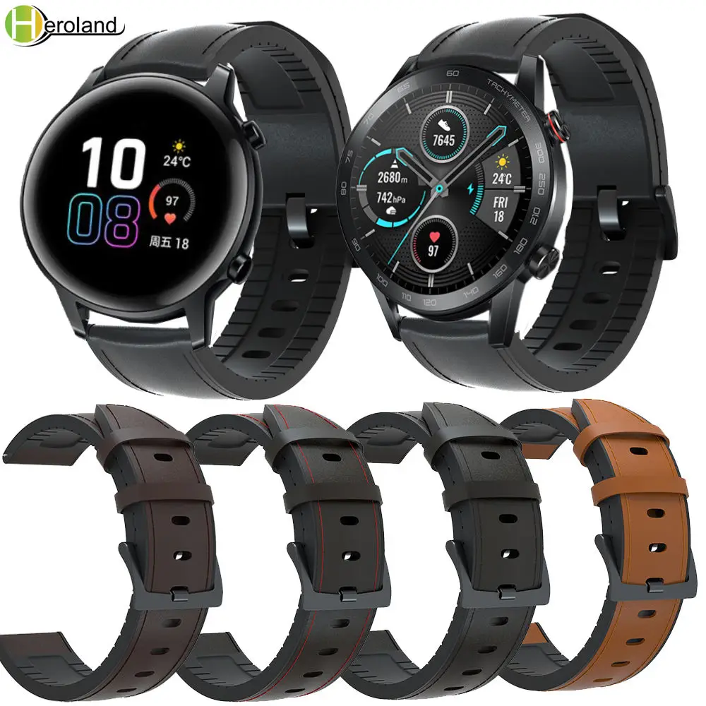 20 мм 22 мм ширина ремешок для часов кожа + силикон для Huawei Honor Magic Watch 2 46 мм 42 мм быстросъемный ремешок для часов