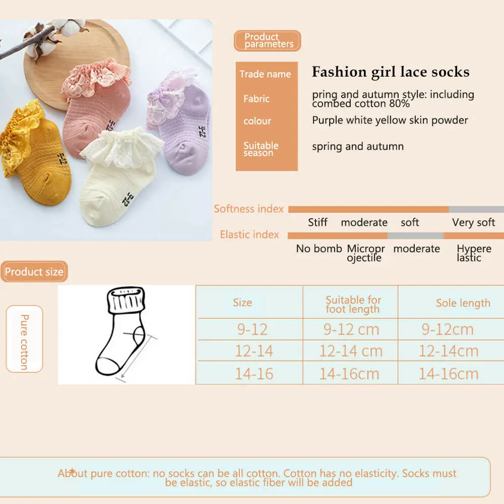 Детские носки для маленьких девочек, кружевные носки с рюшами, летние носки до щиколотки, носки принцессы