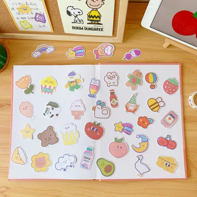 Водонепроницаемые корейские милые наклейки для скрапбукинга, 1 упаковка, Мультяшные бумажные стикеры, хлопья, канцелярские принадлежности для офиса, художественные принадлежности