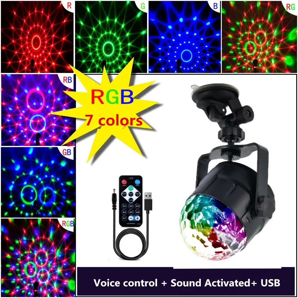 Лазерный проектор с звуковой активацией, 7 цветов, диско-шар, RGB, сценический светильник, светильник с эффектом ing