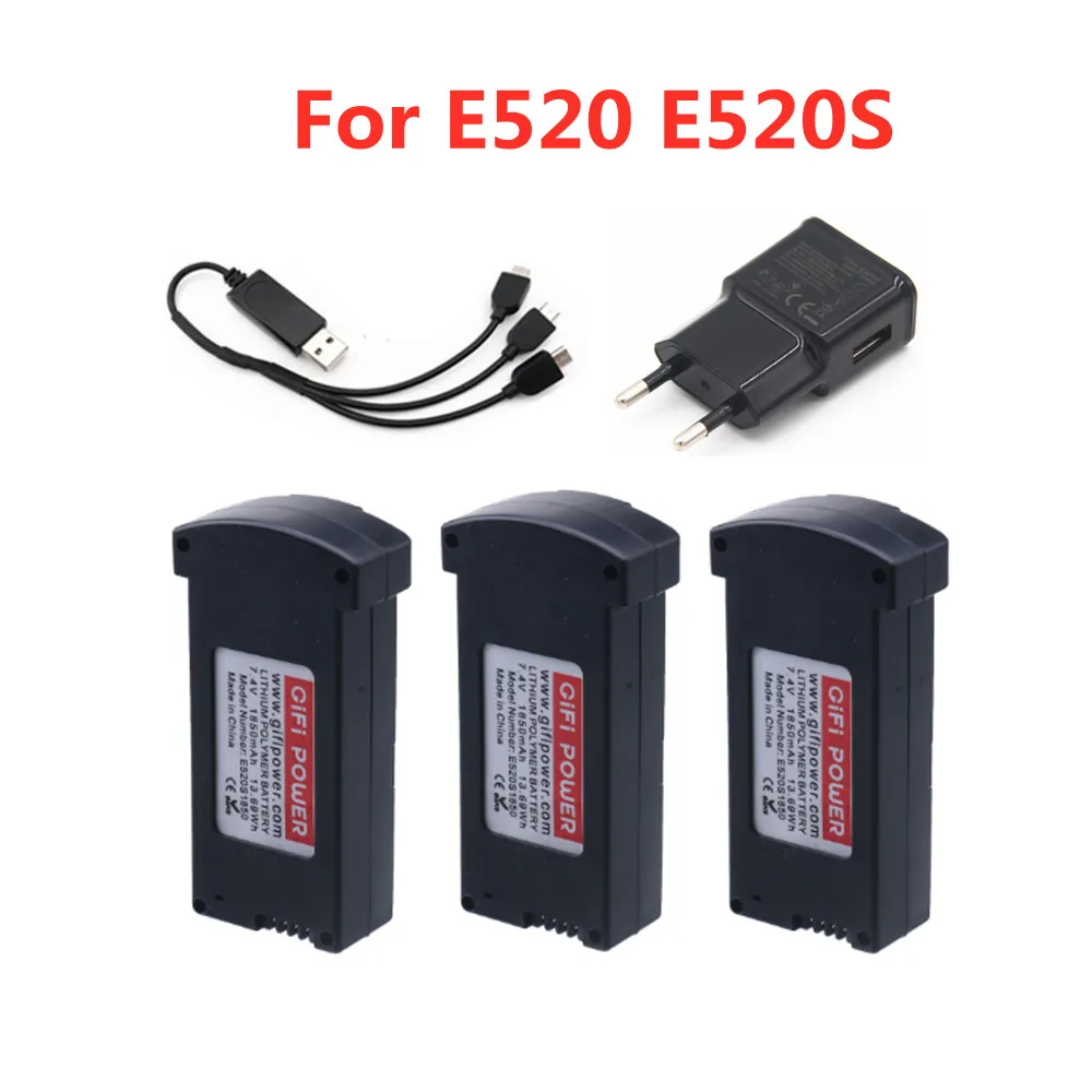 Обновленный аккумулятор LiPo 7,4 в 1200 мАч до 1850 мАч и зарядное устройство для E520 E520S RC квадрокоптера, запасные части, Аккумулятор 7,4 В для дрона E520