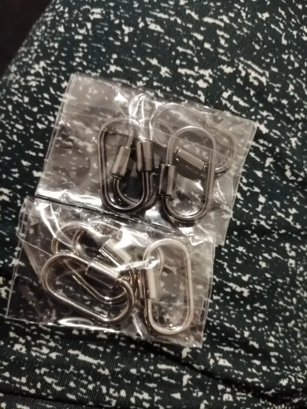 Очень интересные карабины, хорошо смотрятся с крупной цепью. Посмотрим как долго не облезет покрытие. Пока претензий нет, продавцу спасибо)