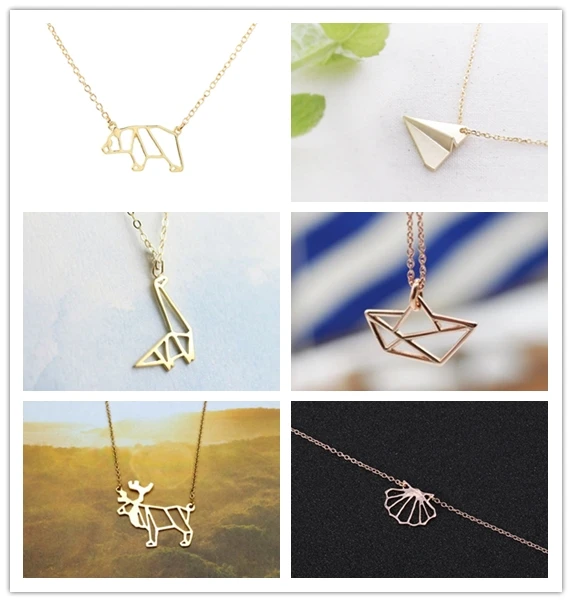 Геометрические оригами Parper панда Медведь лося олень динозавр ожерелья в виде животных самолет парусник Морская раковина, кулон цепочка Ювелирные изделия