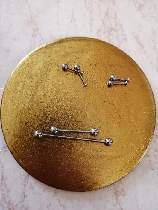 Все ідеально, титан. Хтось писав за поліровку, так ось моя прикраса з титану такого ж кольору. Продавець дуже комунікабельний. Дуже задоволена, все ціле і підходить під мої накруточки