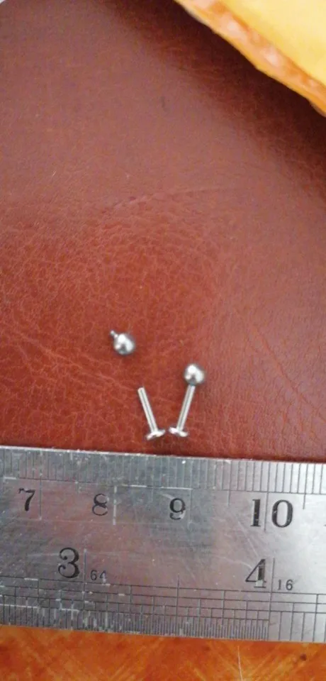 Диаметр 1мм, кажется тоньше, чем у обычных гвоздиков. Пришла не та длинна. Заказывала 0,6, а пришло 0,8. Для уха это слишком длинно. С шариком пришлось повозиться, но не слишком долго. Аллергии нет