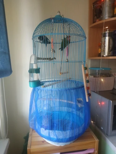 Это практично. Таким образом, он не падает так много перьев и остатков еды на земле. Вы должны отрегулировать его в соответствии с клеткой, которую каждый имеет. Я рекомендую это