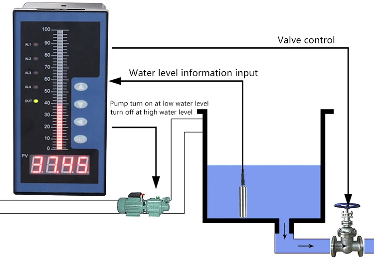 Контроллер уровня воды с датчиком уровня 0-10 м, датчик передатчика глубины жидкости, контроллер глубины воды с 4 релейными выходами 24 В постоянного тока