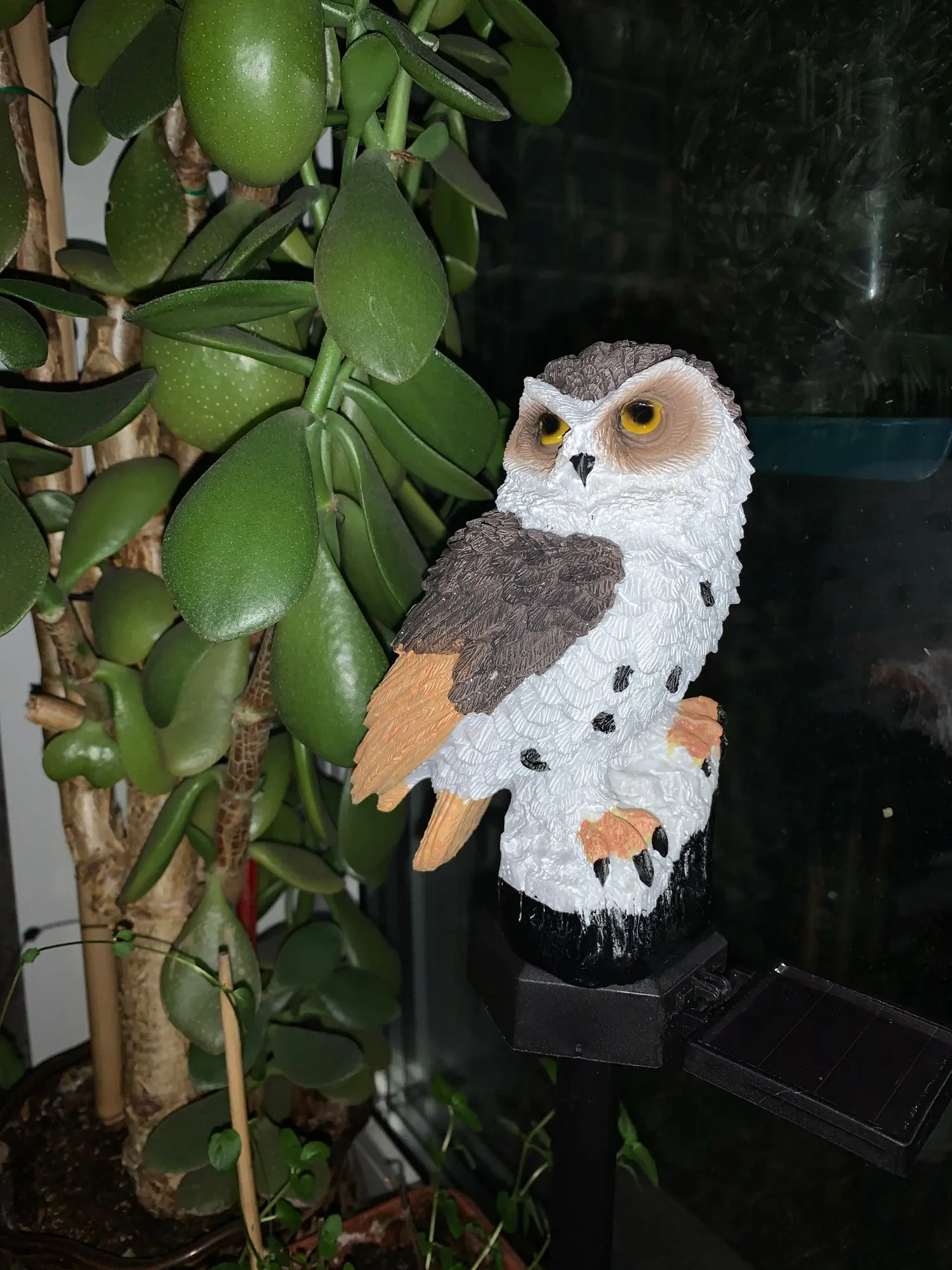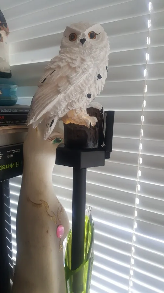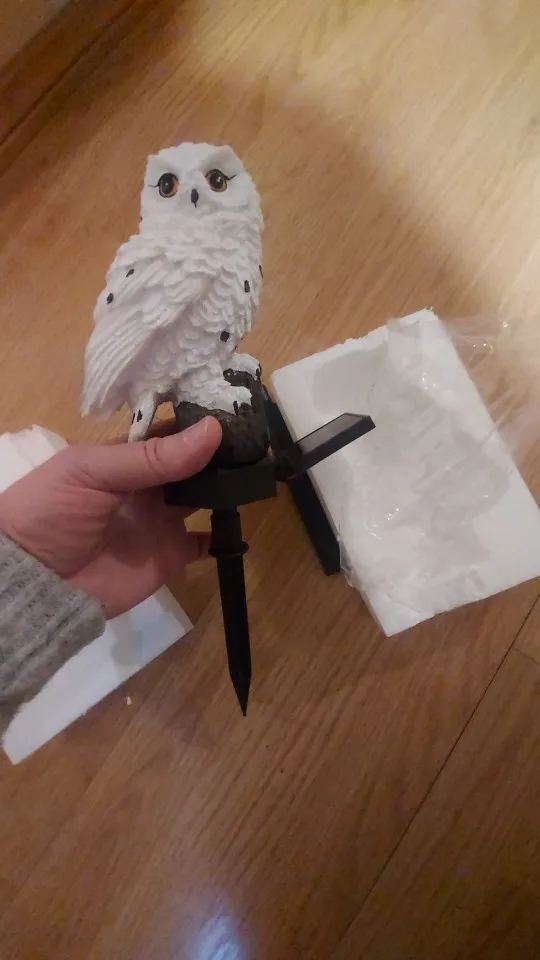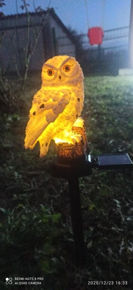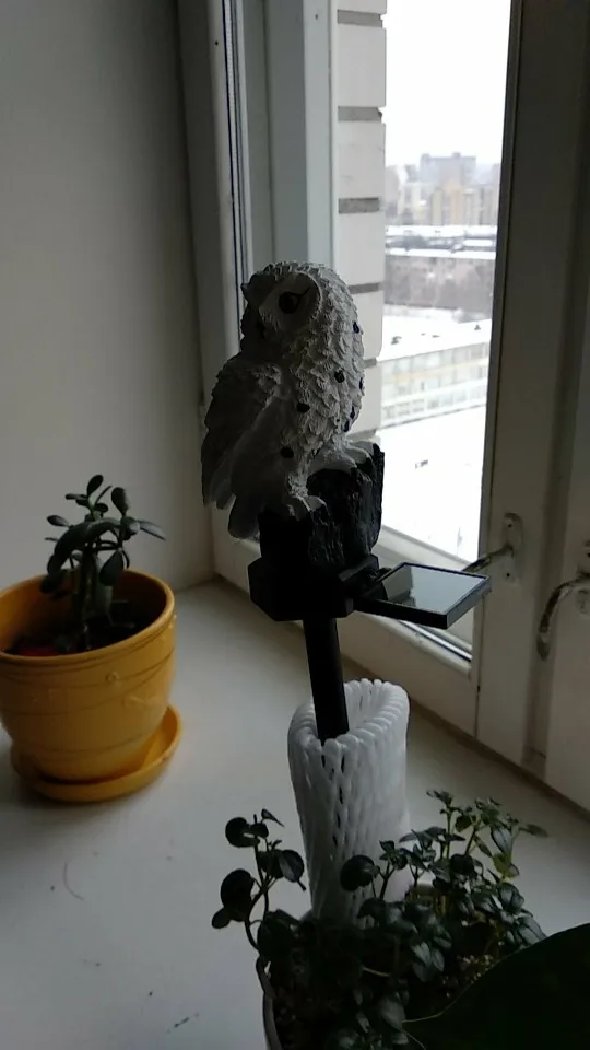 заказ шел 3 недели, отслеживался. продавец очень хорошо упаковал товар. не проверяла как работает от солнца. красивая сова даже как декор. спасибо большое продавцу. хороших продаж. здоровья. с новым 2021 годом!