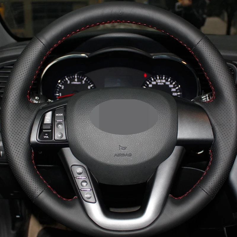 HKOADE "сделай сам" рука сшитый черный Hige мягкий Искусственная кожа Чехол рулевого колеса автомобиля для Kia K5 Оптима 2008 2009 2010 2011 2012 2013