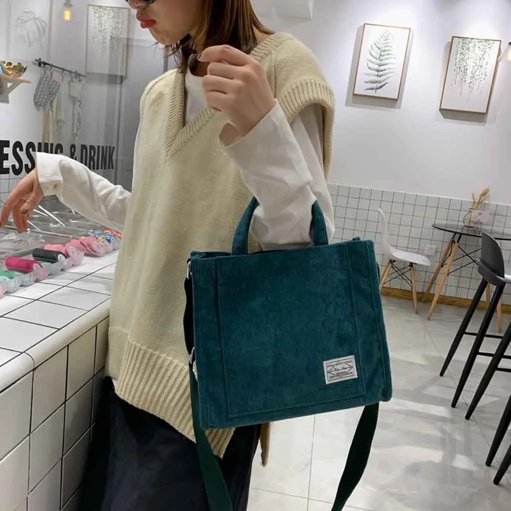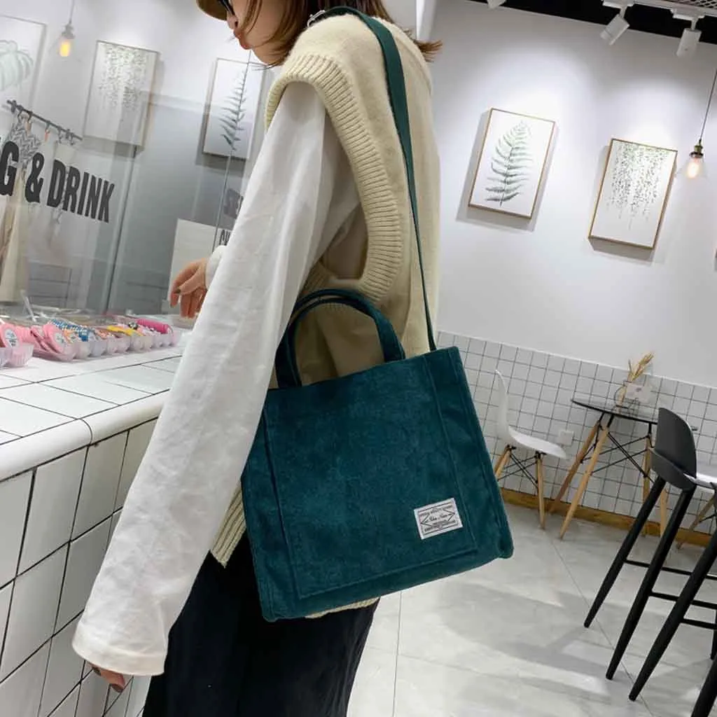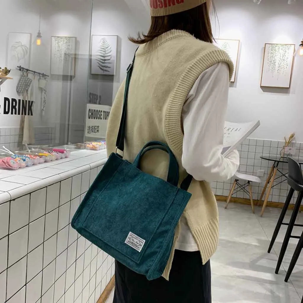Вельветовая сумка на плечо для женщин, хлопчатобумажная тканевая сумочка-тоут, повседневные экологически чистые винтажные мессенджеры через плечо