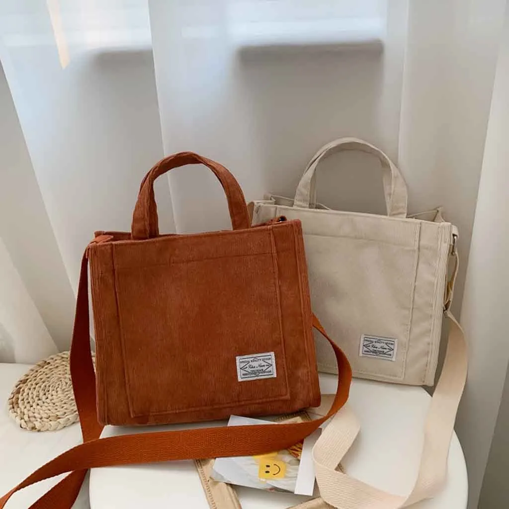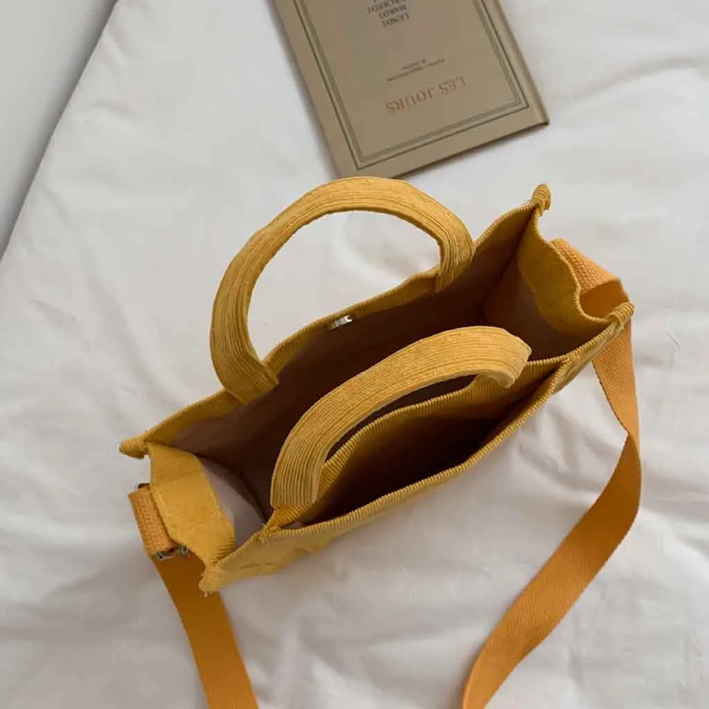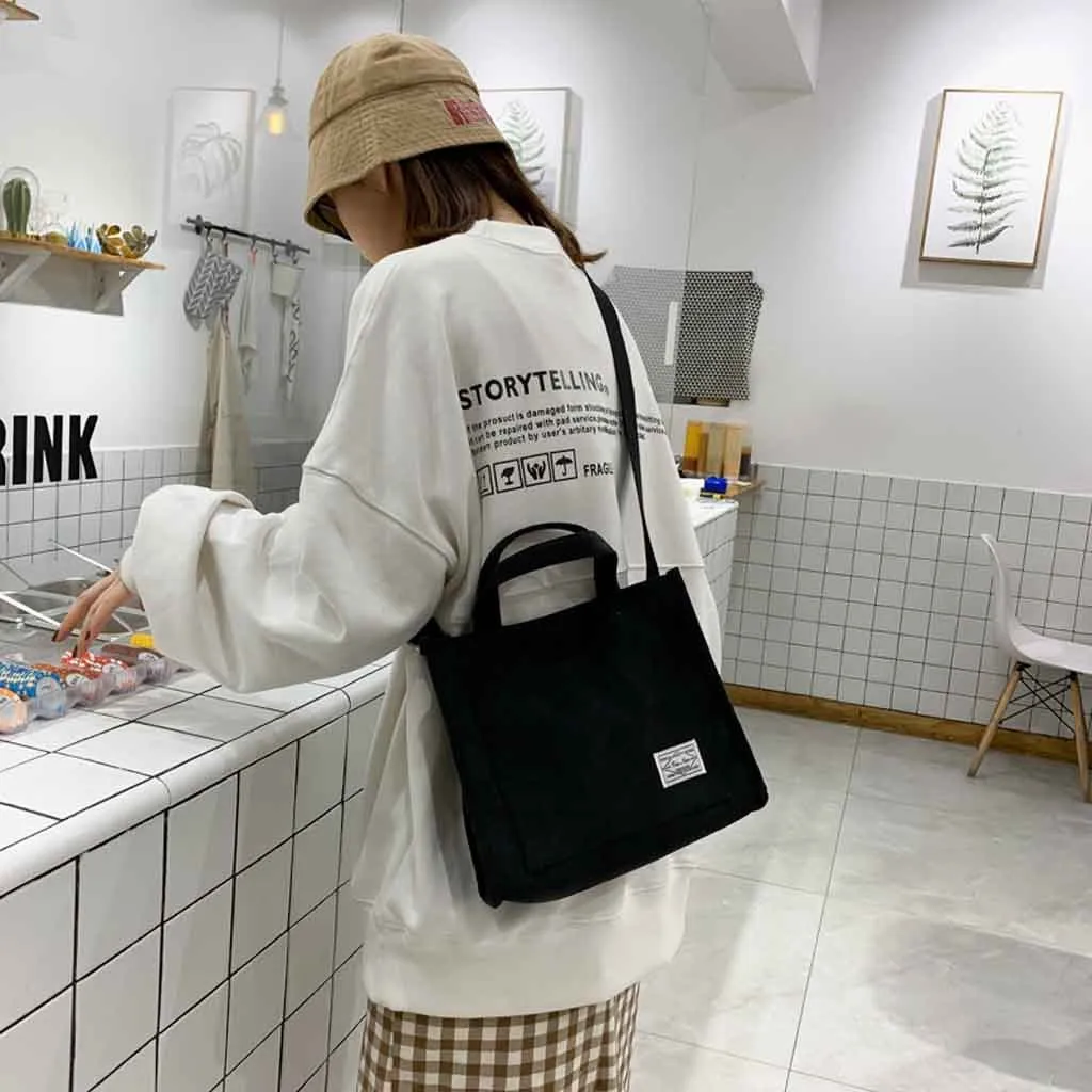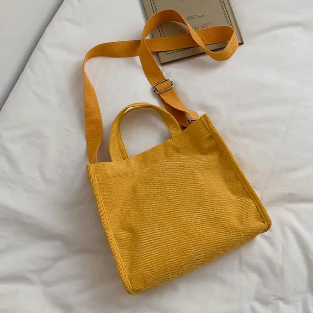 Вельветовая сумка на плечо для женщин, хлопчатобумажная тканевая сумочка-тоут, повседневные экологически чистые винтажные мессенджеры через плечо