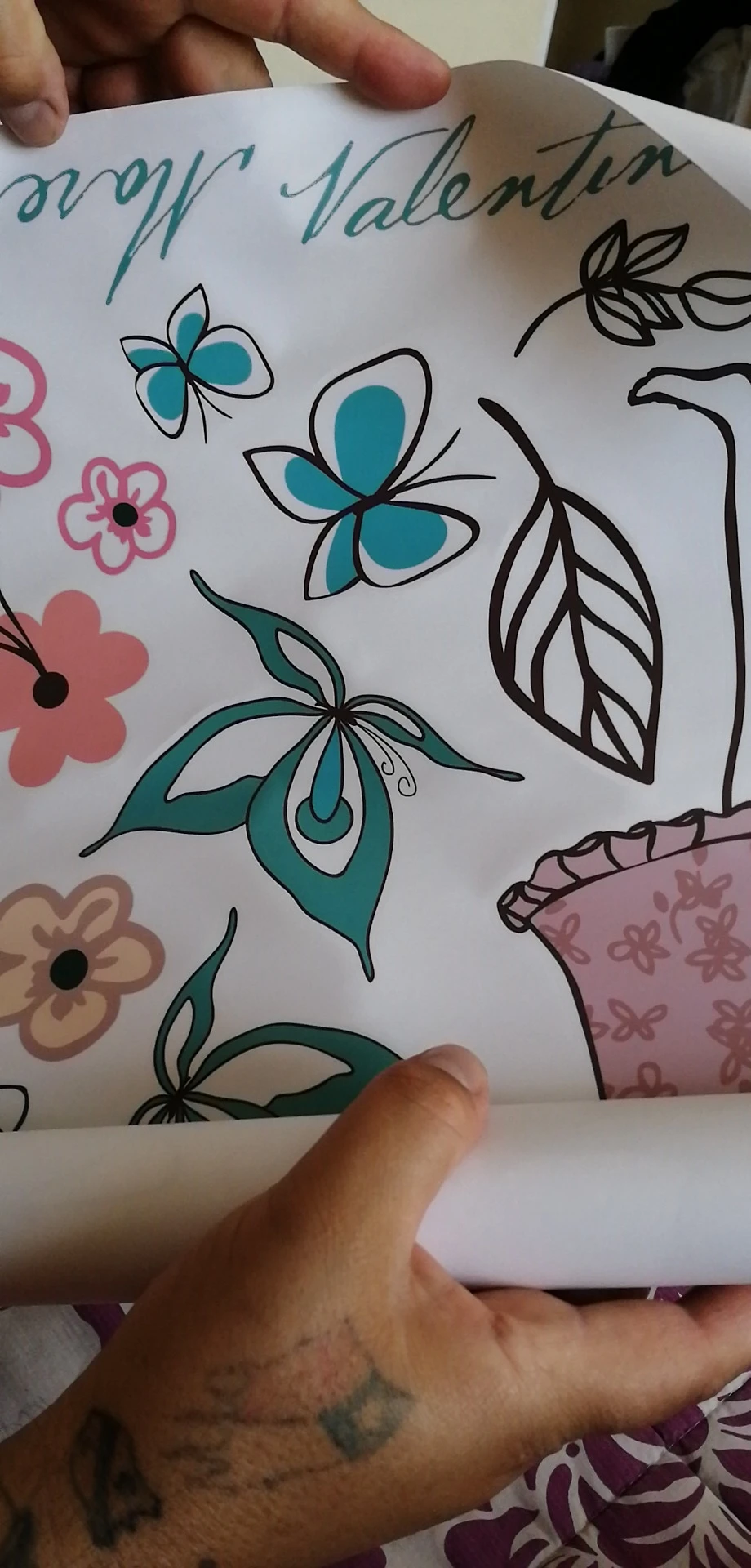 Доставка около месяца, цвет такой же как на фото продавца. Пришло всё идеально упаковано и скрученным в рулон на поролоновом валике, замятия нигде нет. Попробовала приклеить одну бабочку, держится очень крепко даже на старых необработанных обоях. Продавцу огромное спасибо за качественный товар и отправку!)) Рекомендую!