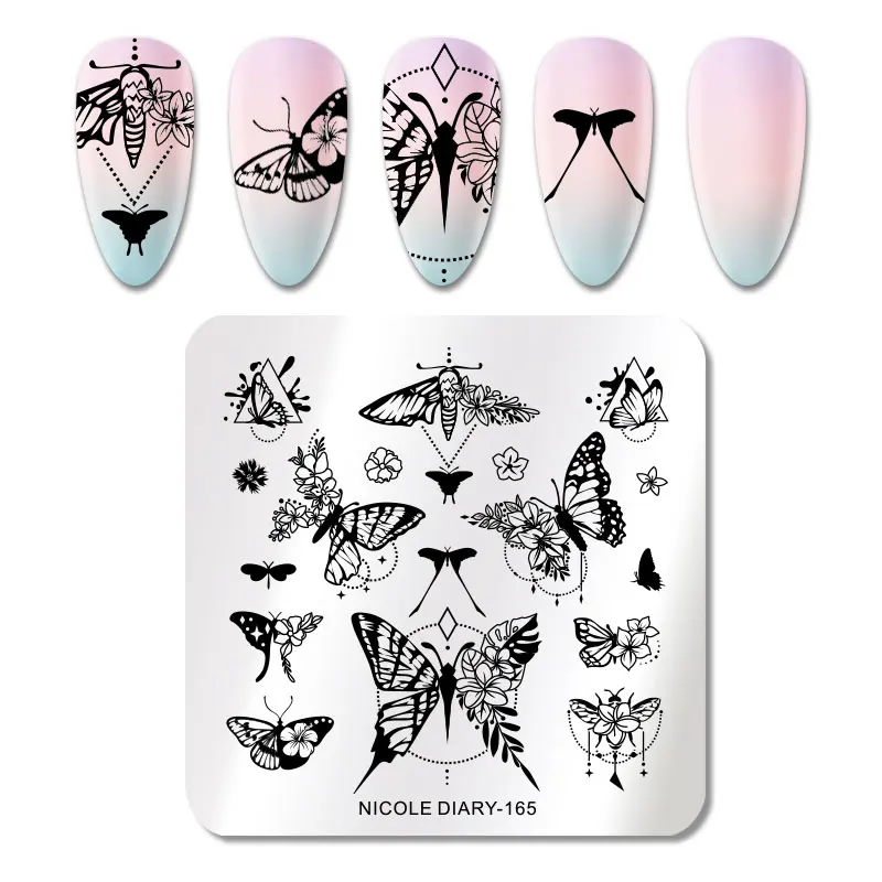 Трафареты для стемпинга ногтей с изображением бабочки и змеи