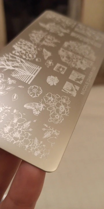 Пластина супер ! Печатала лаком для стемпинга , тонкие линии переносит без проблем , отпечатки чёткие . Я довольна