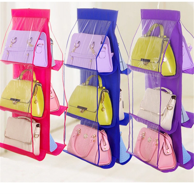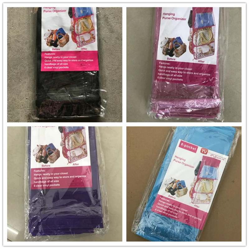 Складная подвесная сумка с 6 отделениями, органайзер для сумок и кошельков, прозрачный Карманный держатель для хранения, гардероба