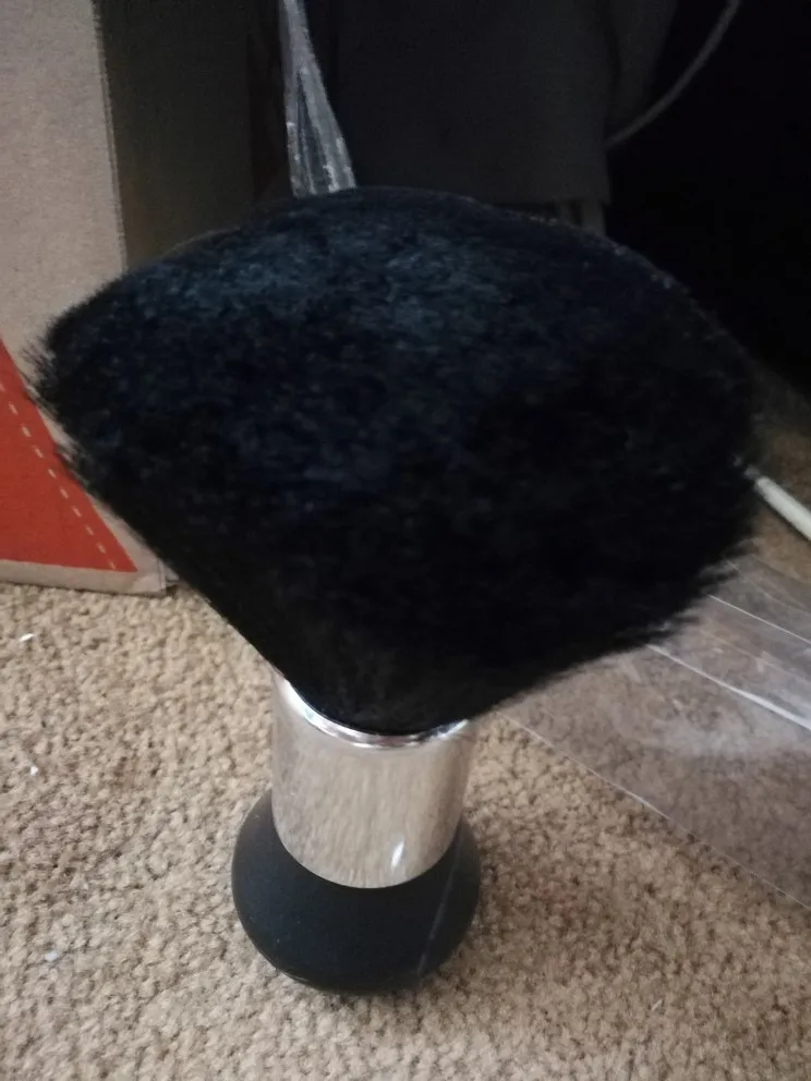 Кисточка пришла, упаковка раздавлена но товар не пострадал, профессиональный парикмахер весьма похвалила, сказала волнистые волоски намного лучше помогают смести волоски, мягкая качественная кисть, продавца рекомендую!