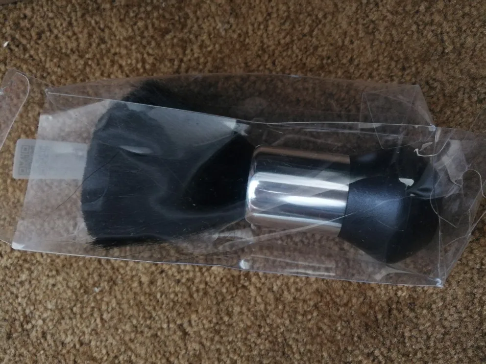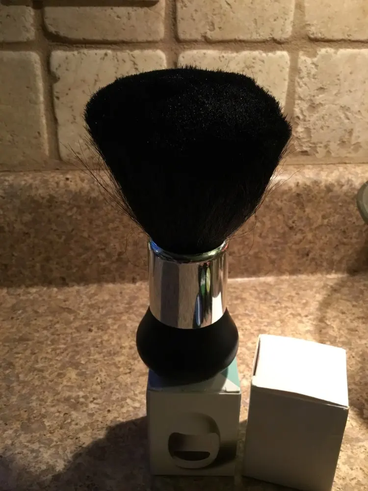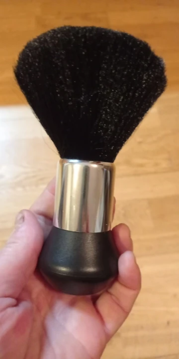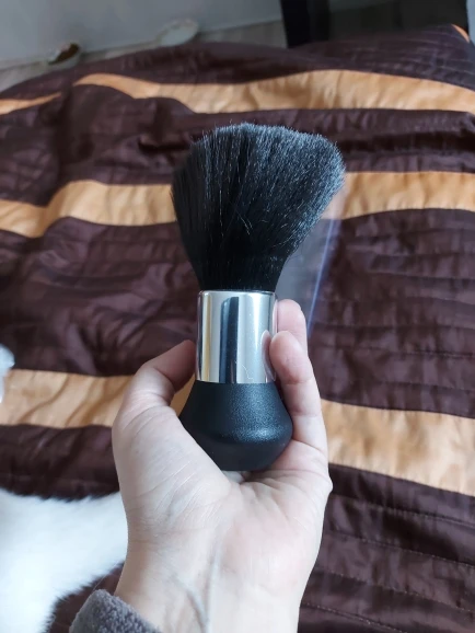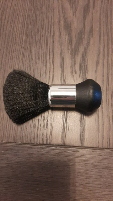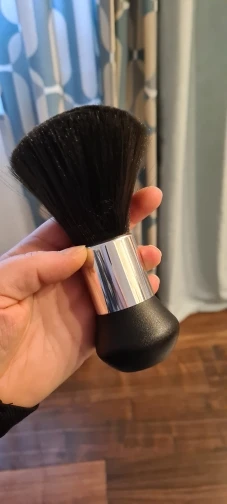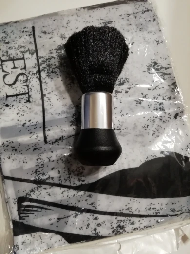 Хорошая кисточка,без запаха.Ворс мягкий и приятный к коже,но при этом хорошо выметает остриженные волосы.Рекомендую,буду заказывать вторую!