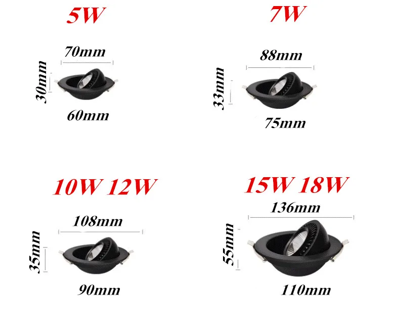 Светодиодный потолочный Точечный светильник 5 Вт, 7 Вт, 10 Вт, 15 Вт, 18 Вт, с поворотным углом, 110 В переменного тока, 220 В, черныйбелый корпусветильник
