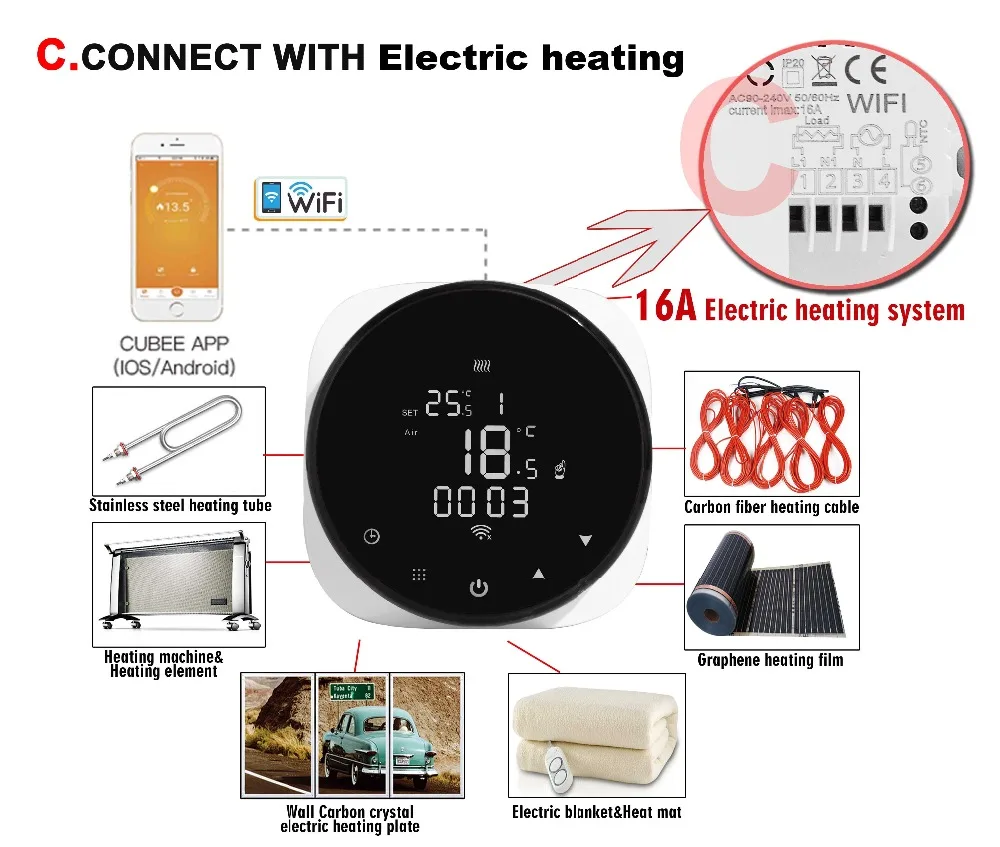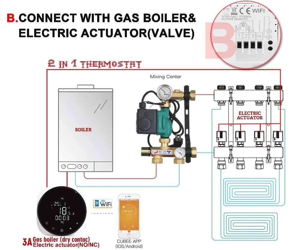 Термостат HESSWAY TUYA для отопления и горячей воды, цифровой, Wi-Fi