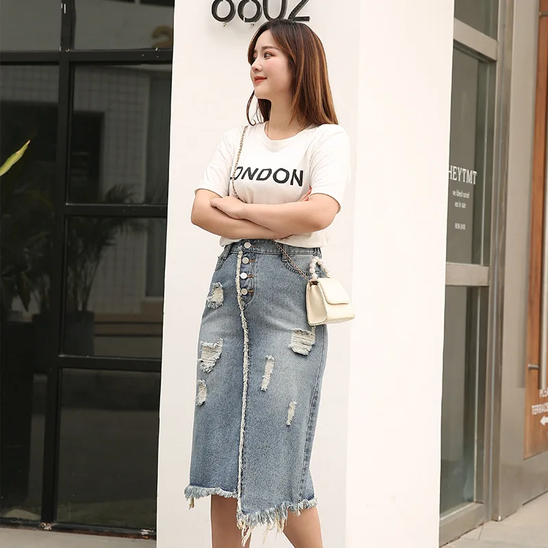 Женская джинсовая юбка, отбеленные рваные джинсовые юбки большого размера 8XL в Корейском стиле, размера плюс