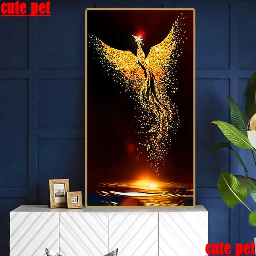 Большая 5D алмазная живопись Золотой Феникс, полная вышивка крестиком, квадратная Алмазная вышивка стразы, Алмазная мозаика, Декор, милый питомец