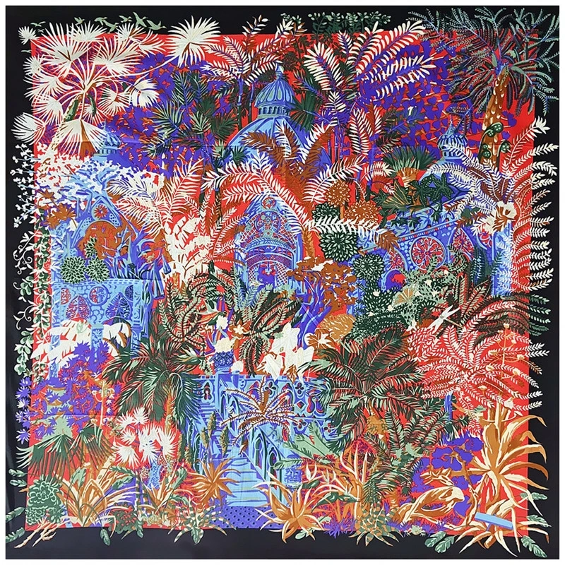 POBING 100% шелковый шарф, женские Большие шали, палантины с растениями в джунглях, квадратная бандана, роскошный платок, хиджаб, женский шарф, 130 см