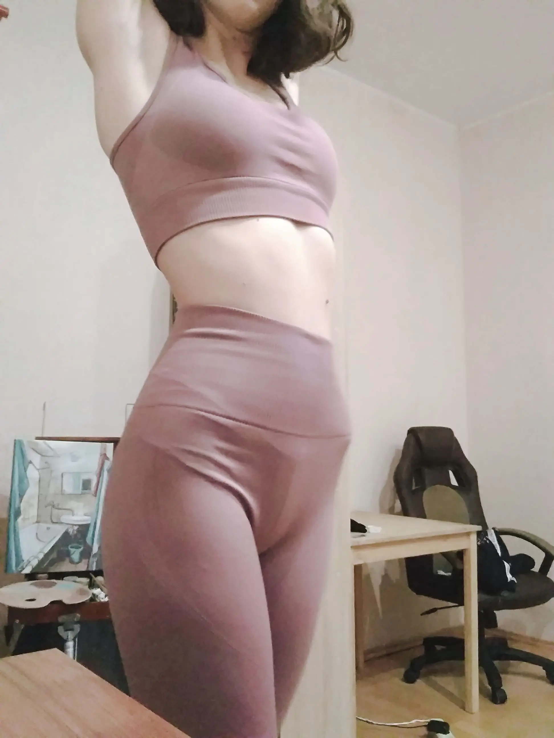 Хороший костюм, немного жаркий для занятий со штангой. Единственное низ очень высокий, обычно подворачиваю, чтобы была полоска тела пошире