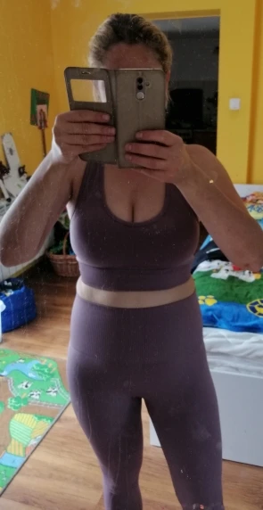 Все идеально. Ткань плотная и удобная. Заказал L для моего M/L bod. Брюки идеально подходят, топ может быть немного плотнее, чтобы работать как бюстгальтер, но как топ идеально. Цвет яркий и сочный