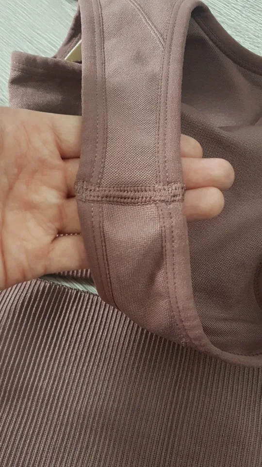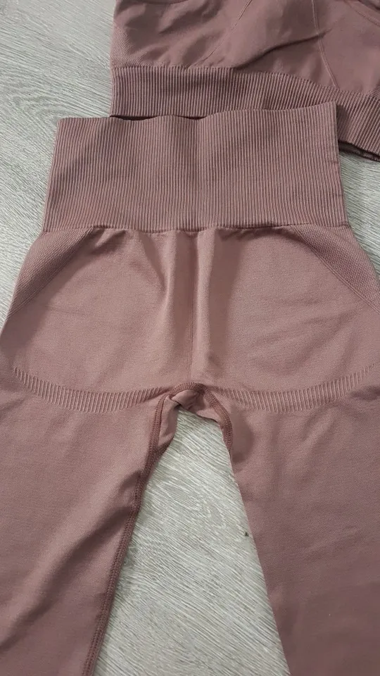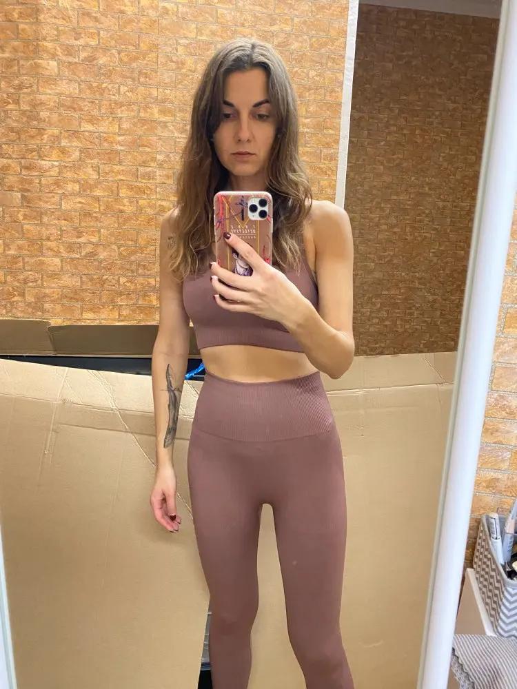 Костюм офигенный! Один из самых лучших товаров с алиэкспресса! Ткань хорошо тянется, в меру утягивает, плотная, не просвечивает. В руках её держишь и аж тяжёленькая) швы все отличные. В топе вставные чашки, которые вообще не видно и легко вынимать. Цвет благородный. При стирке на 40’ ничего не поменялось. Очень- очень ему рада!! Размер S на От 65, Об 88 , Ог 79 впритык (лосины отлично, а вот топ чуть маловат), на рост 166 см длина идеальная! Определенно советую брать)