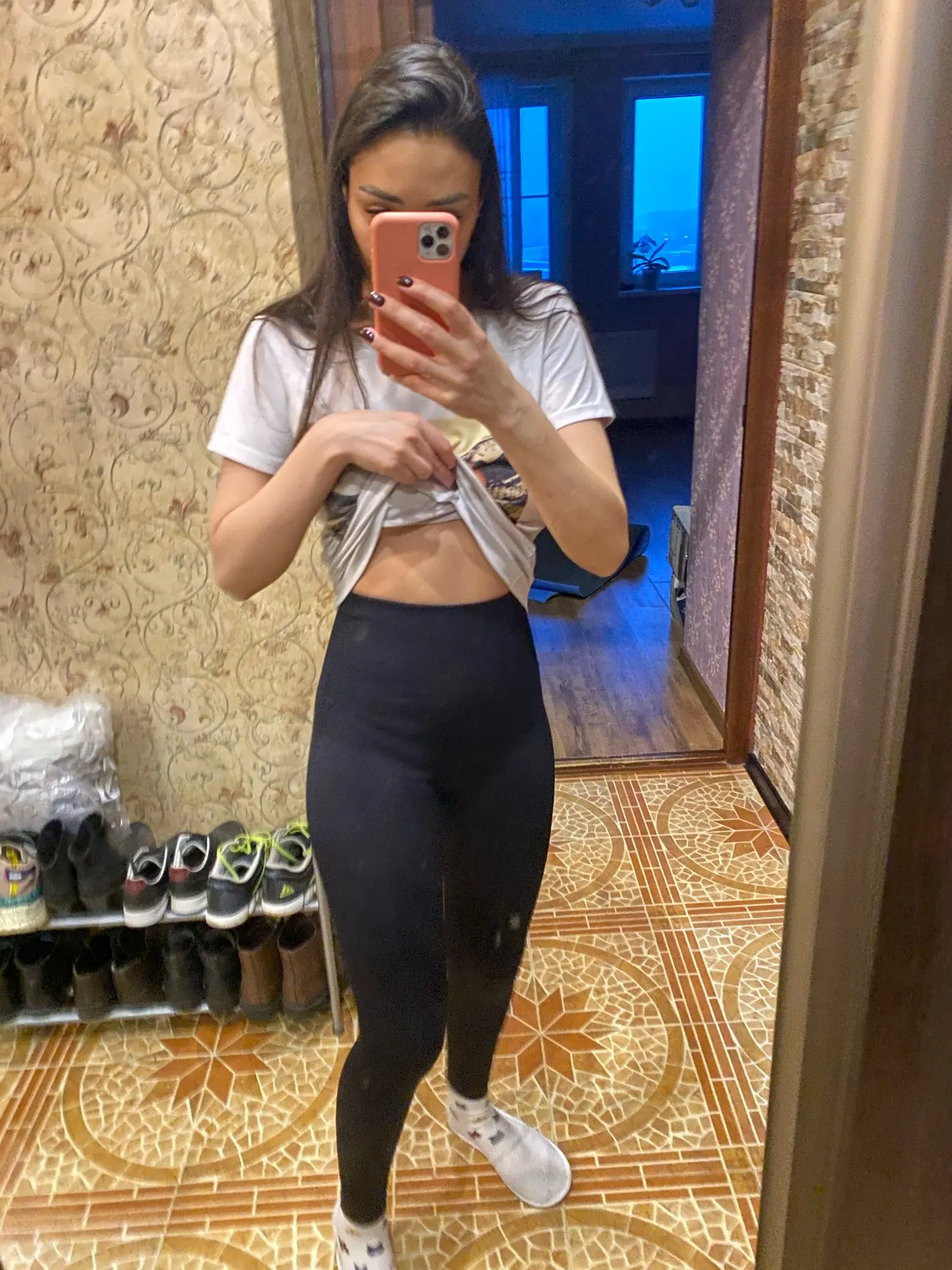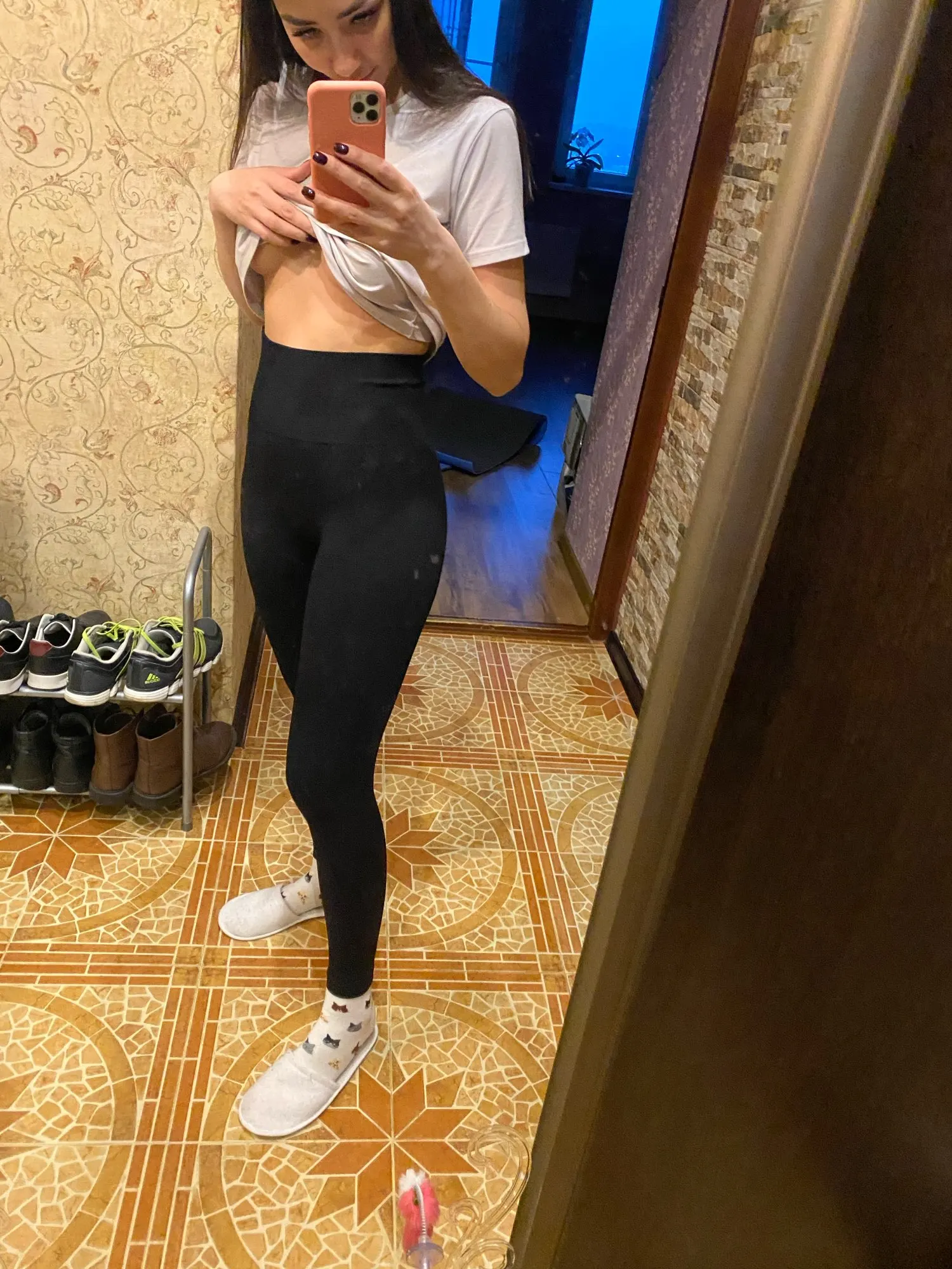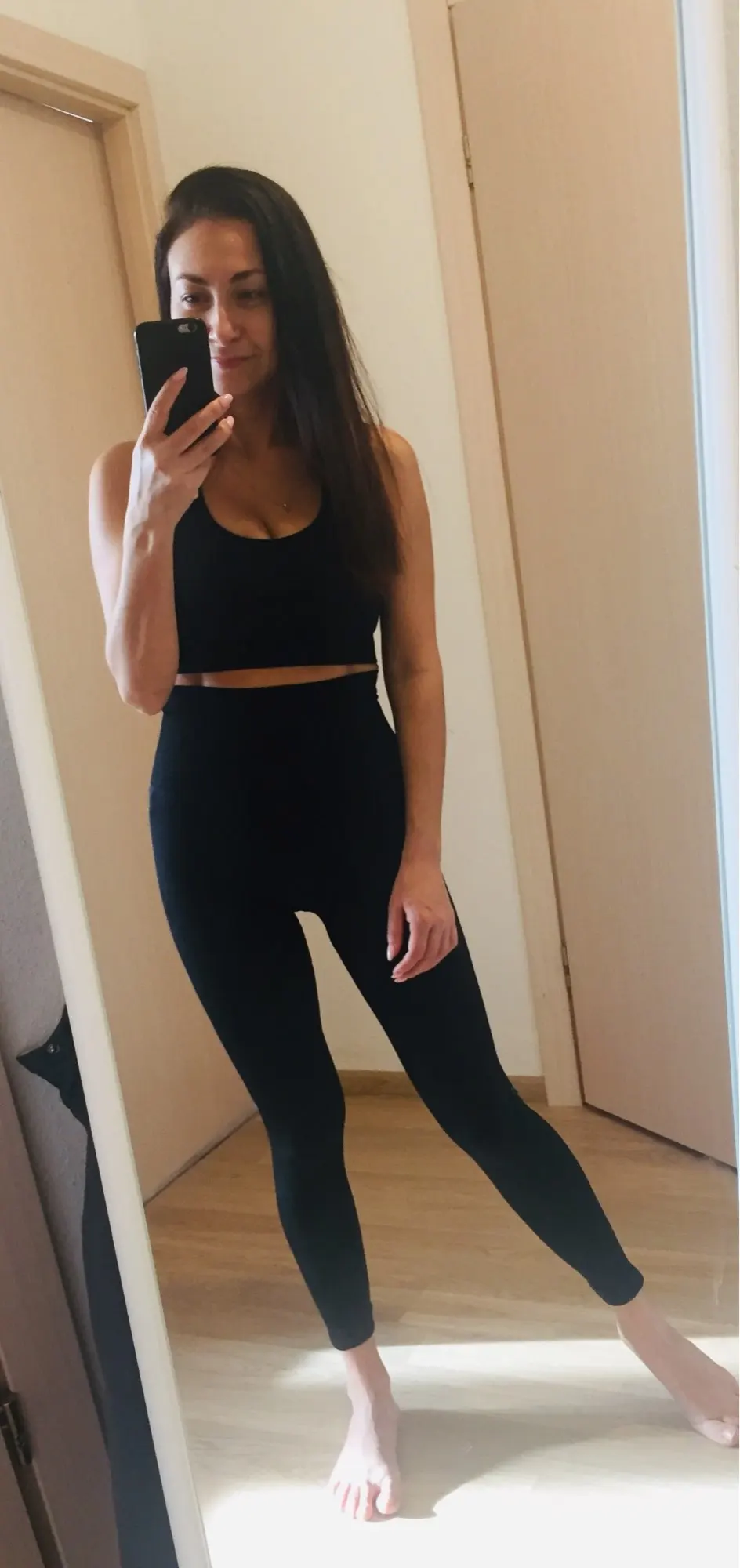 Супер толстая ткань! Он идеально формирует живот и сильно растягивается. У меня есть другие леггинсы размера M, и я решил выбрать сейчас S, оба божественны, это уже вопрос вкуса. Примечание; Они были короткими для меня! Не так, как показано на рисунке, рассмотрите его высоту