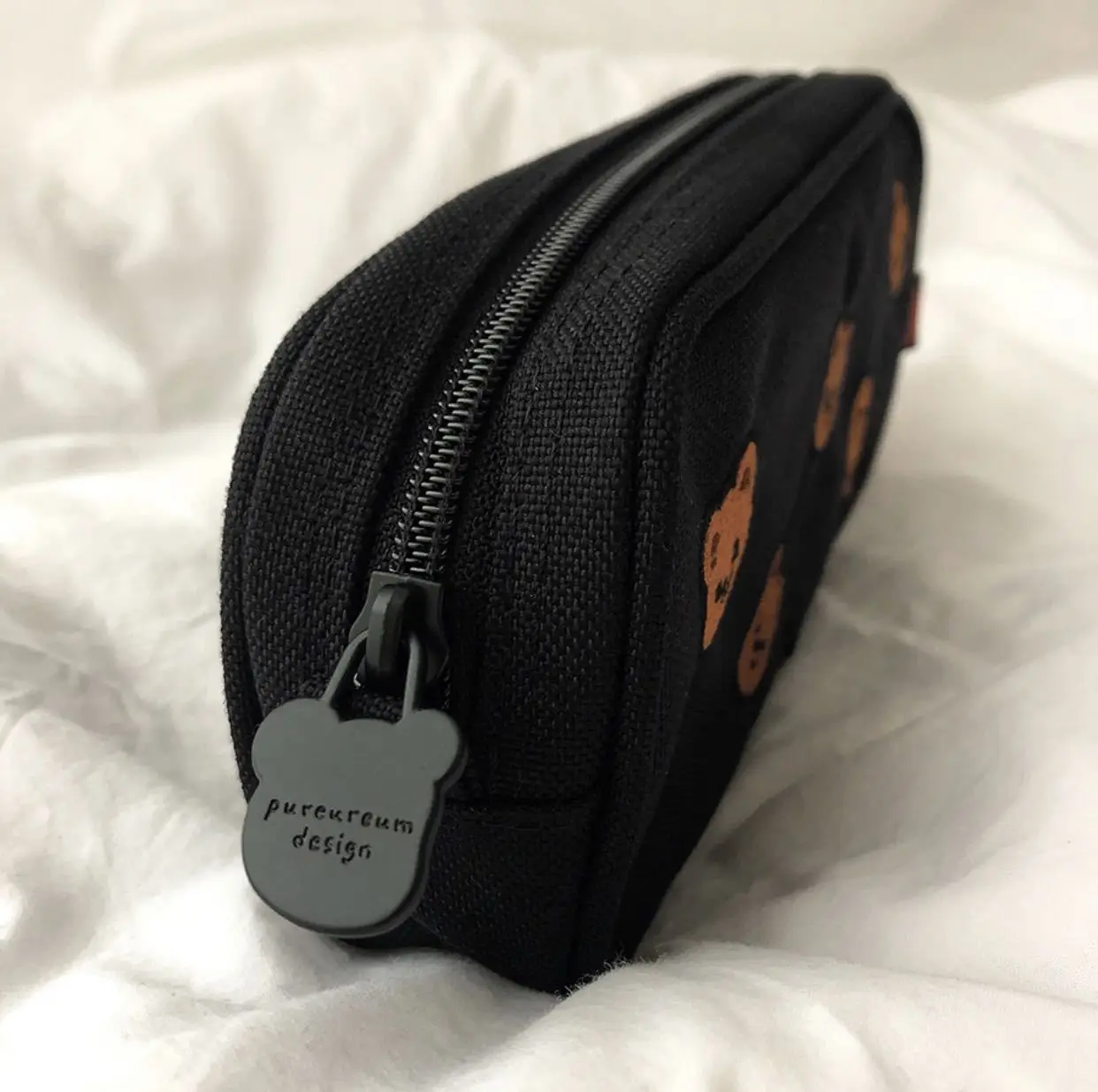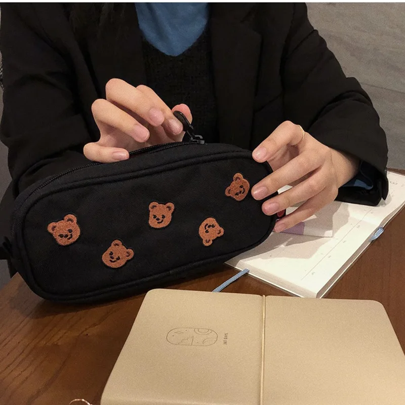 Кавайный мультяшный медведь сумка для карандашей с вышивкой, Большая вместительная сумка для хранения косметики, корейские Канцтовары, школьные принадлежности