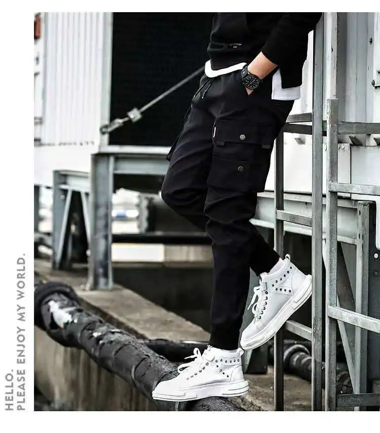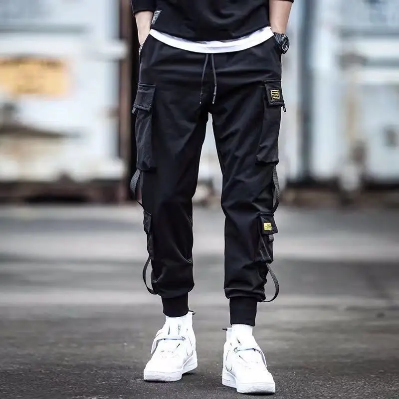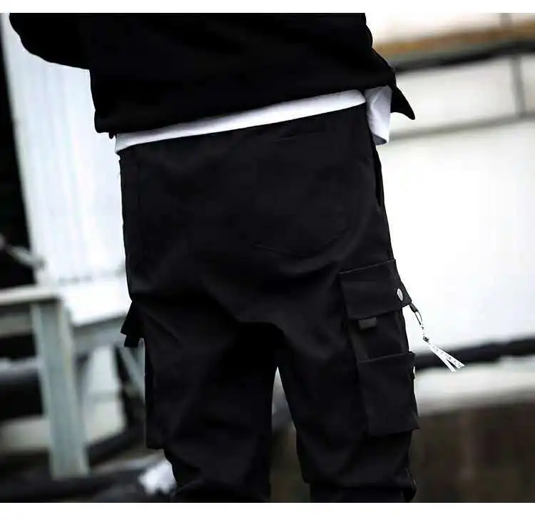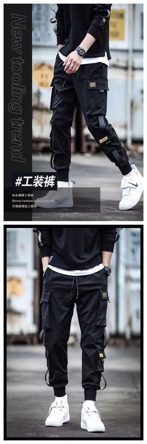 Брюки-карго мужские Студенческие, Свободный комбинезон, повседневные Джоггеры со множеством карманов в Корейском стиле, модные брюки до щиколотки, с эластичным поясом