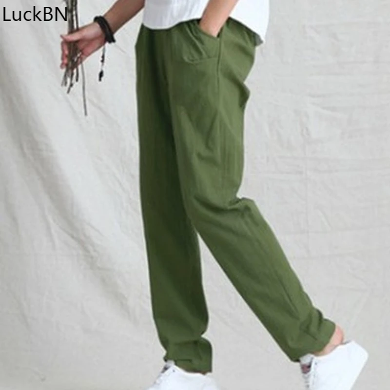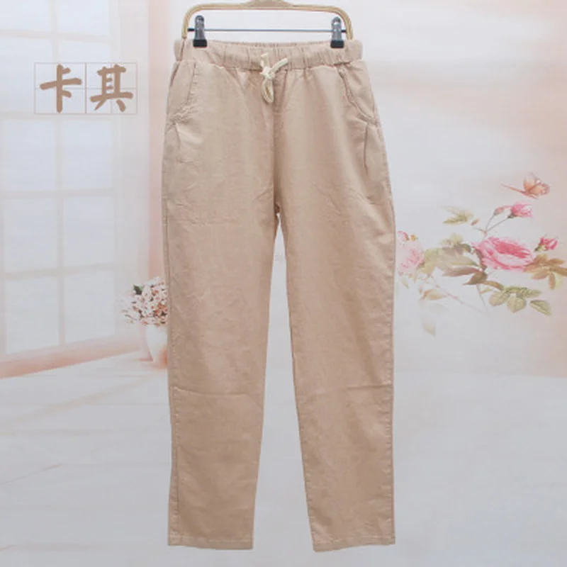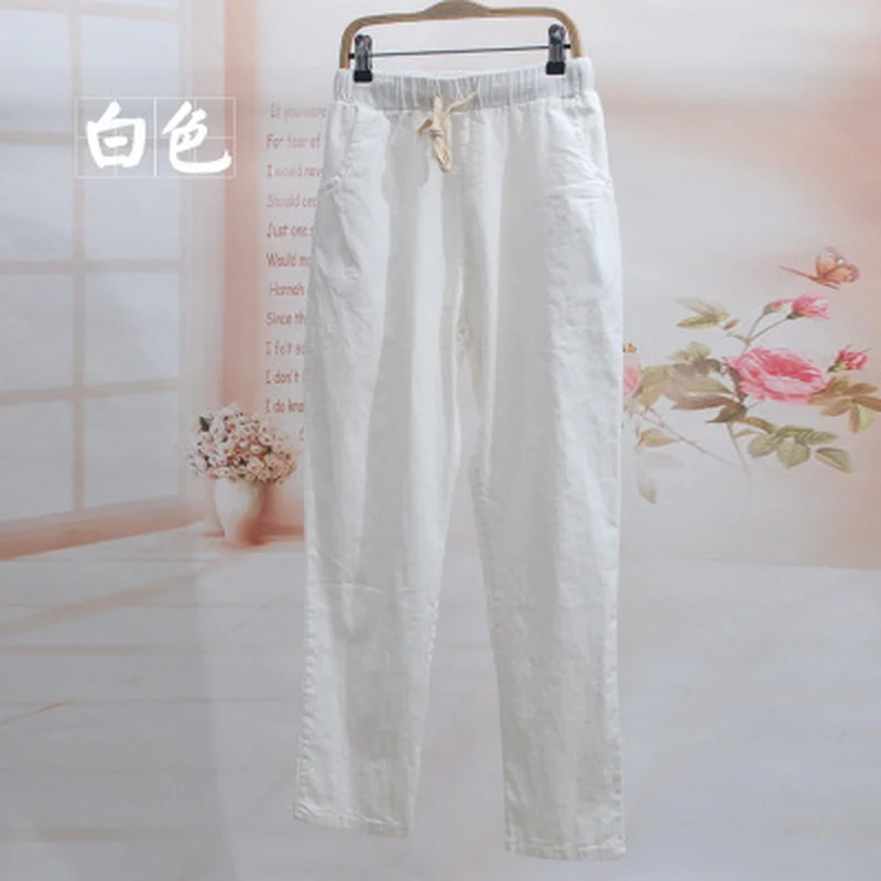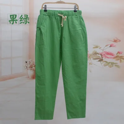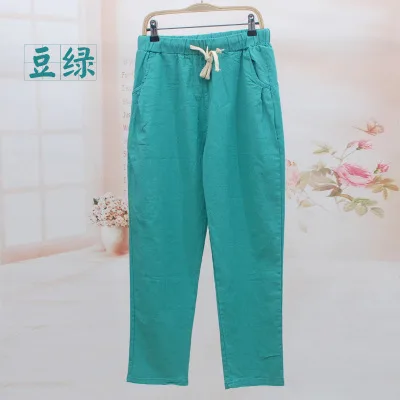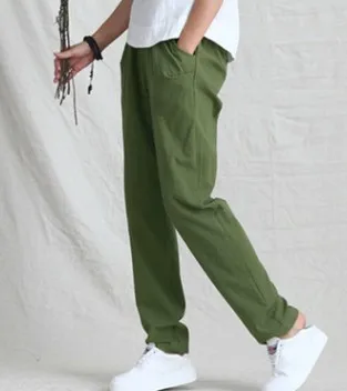 Женские шаровары из хлопка и льна, однотонные, с эластичной талией, ярких цветов, мягкие, для весны и лета