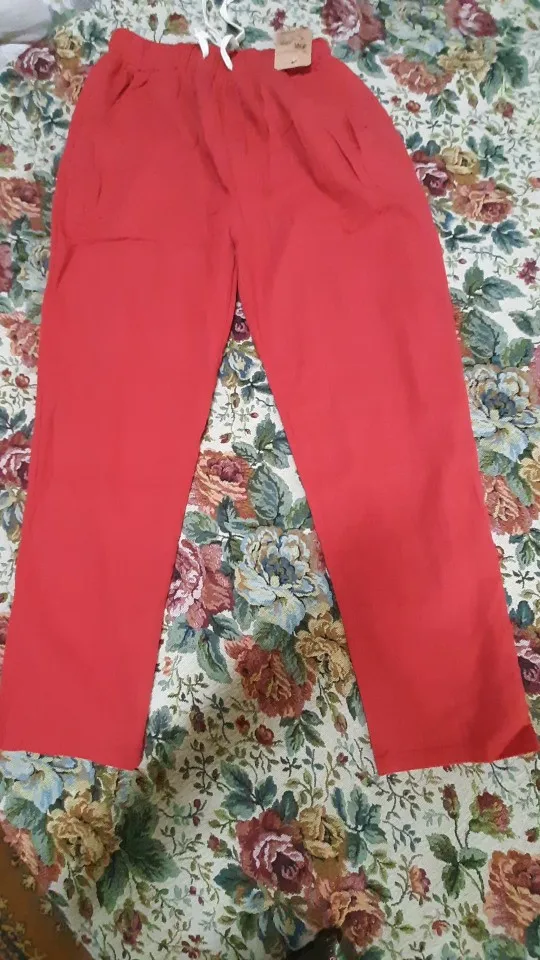 Размер не соответствует, заказала XXXL, не подошли. Возврат оформлять не стала, так как подошли брюки дочки, она носит 46 размер. В целом, ткань хорошая, 100% хлопок. Не для дам, с большим размерам. Доставка до Якутска, один месяц. С продавцом не общалась.