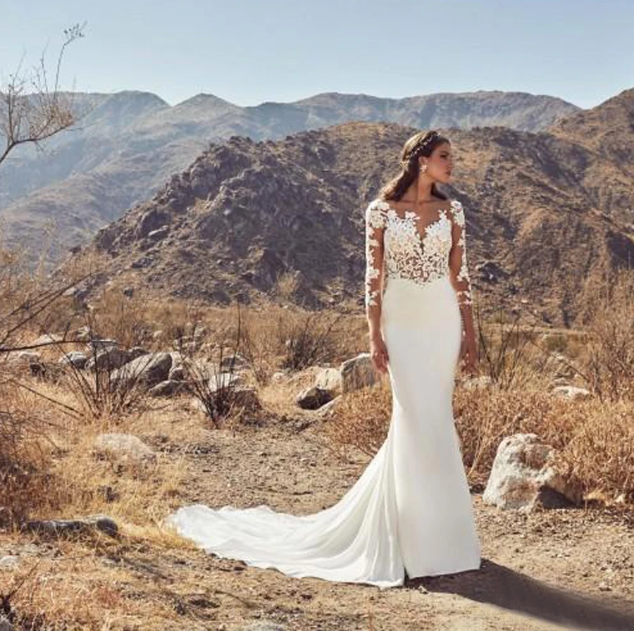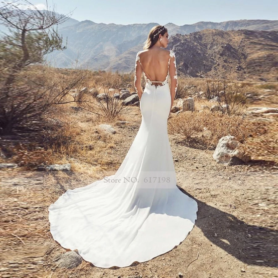 Сексуальное кружевное платье с аппликацией в стиле бохо, свадебные платья с открытой спиной и юбкой-годе, свадебное платье с длинным рукавом, robe de mariage, 2020, свадебные платья