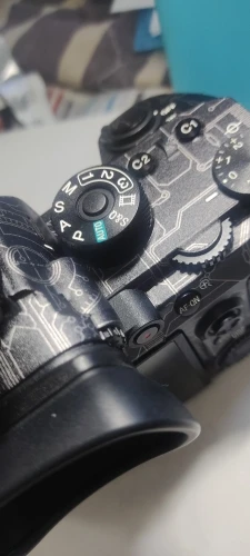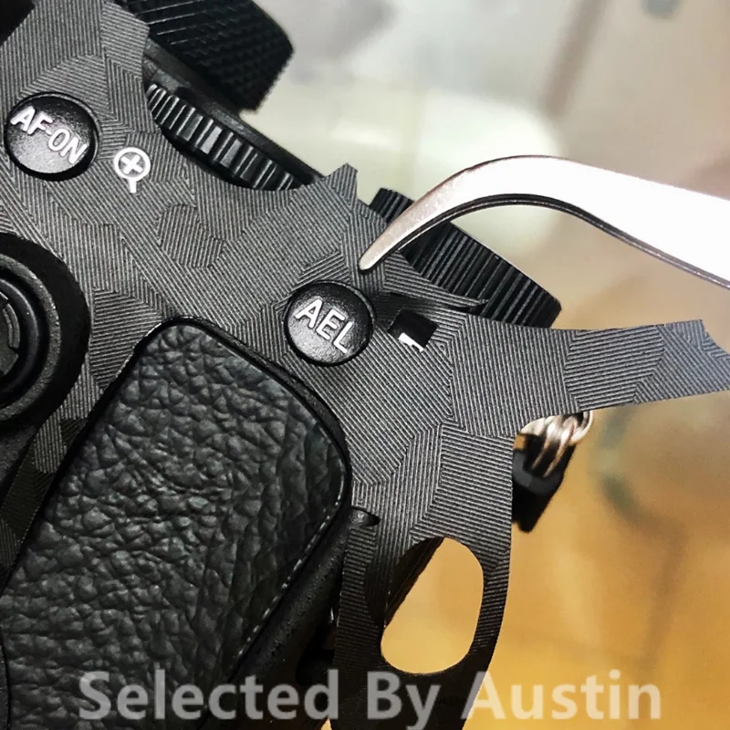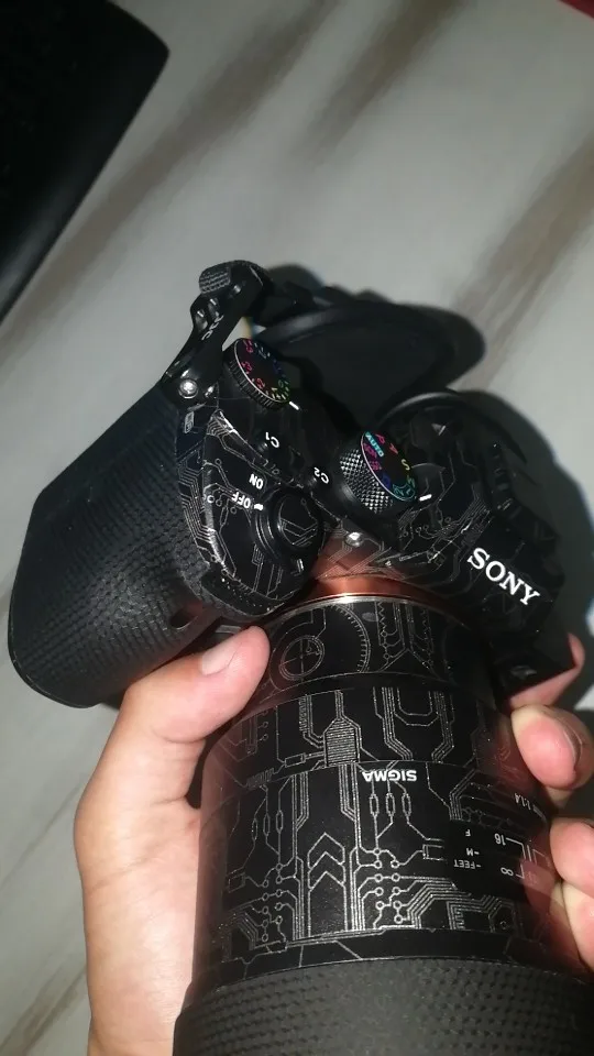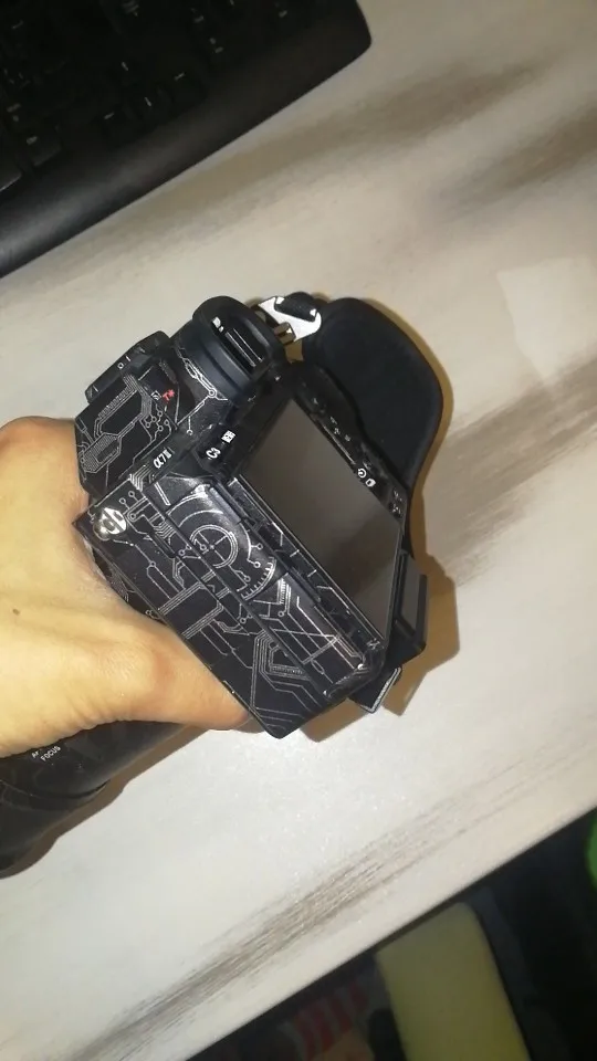 с камерой просто всё великолепно, все детали точно подобраны и идеально подходят, нареканий насчёт наклеек нет. клей хороший, даёт шанс на повторное наклеивание, но это и минус, не очень крепко схватывает, может край наклейки зацепиться и отклеиться. стало намного комфортнее пользоваться камерой, не скользит в руках и не липнет к ним