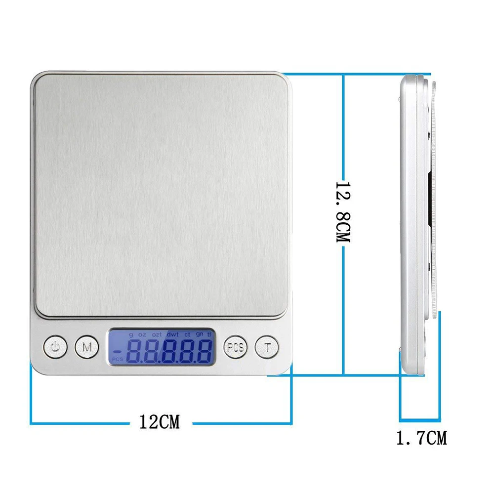 Цифровые кухонные весы из нержавеющей стали, точные ювелирные изделия, электронные весы, вес золота, вес 1 кг2 кг3 кг0,1 г500 г0,01 г